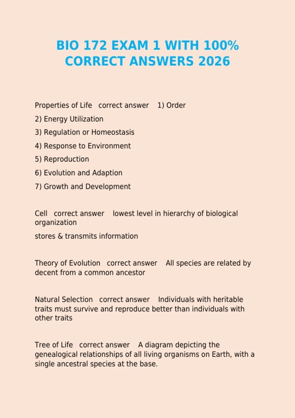 BIO 172 EXAM 1 WITH 100% CORRECT ANSWERS 2026