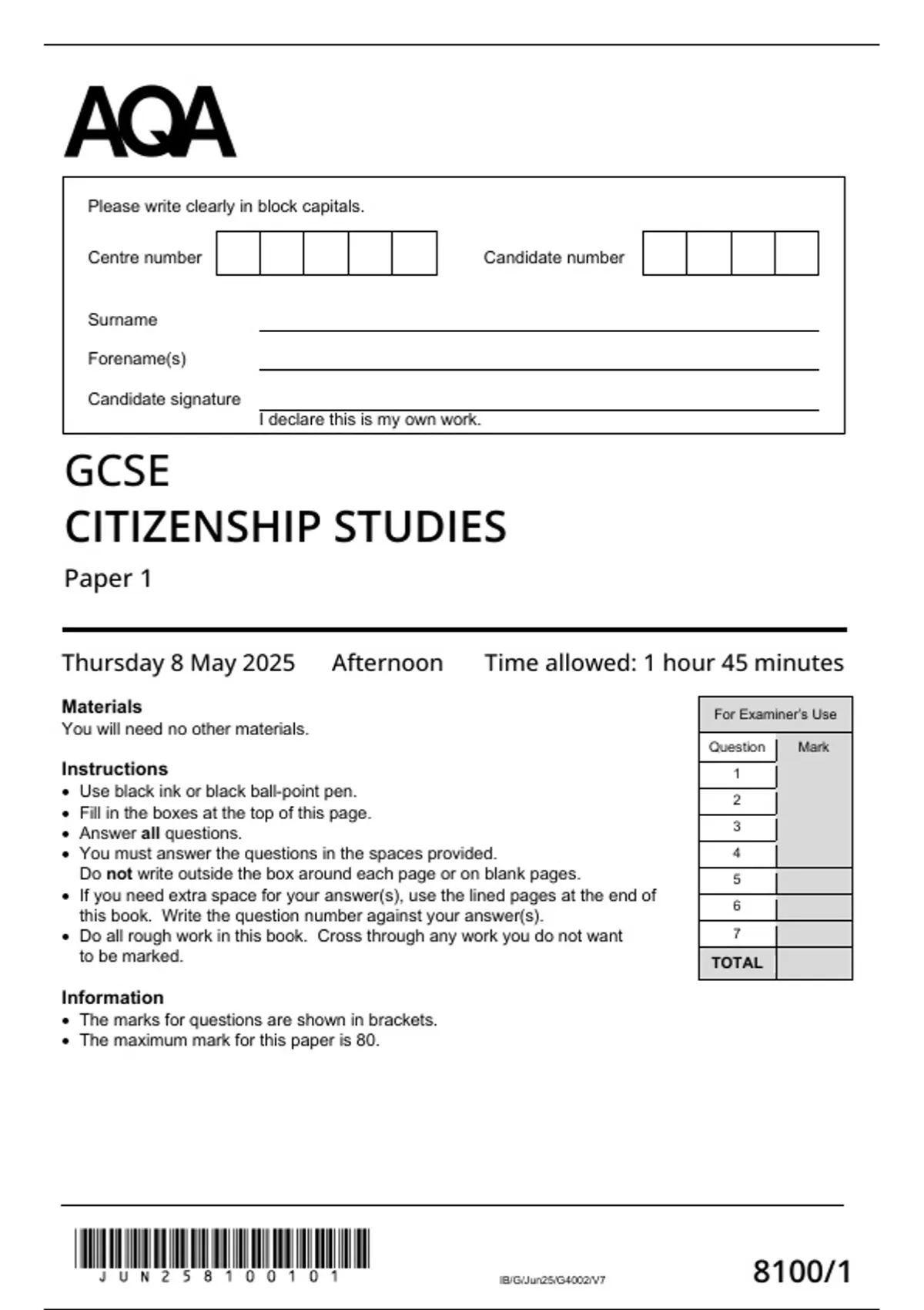 Thursday 8 May 2025 Afternoon Time allowed: 1 hour 45 minutes