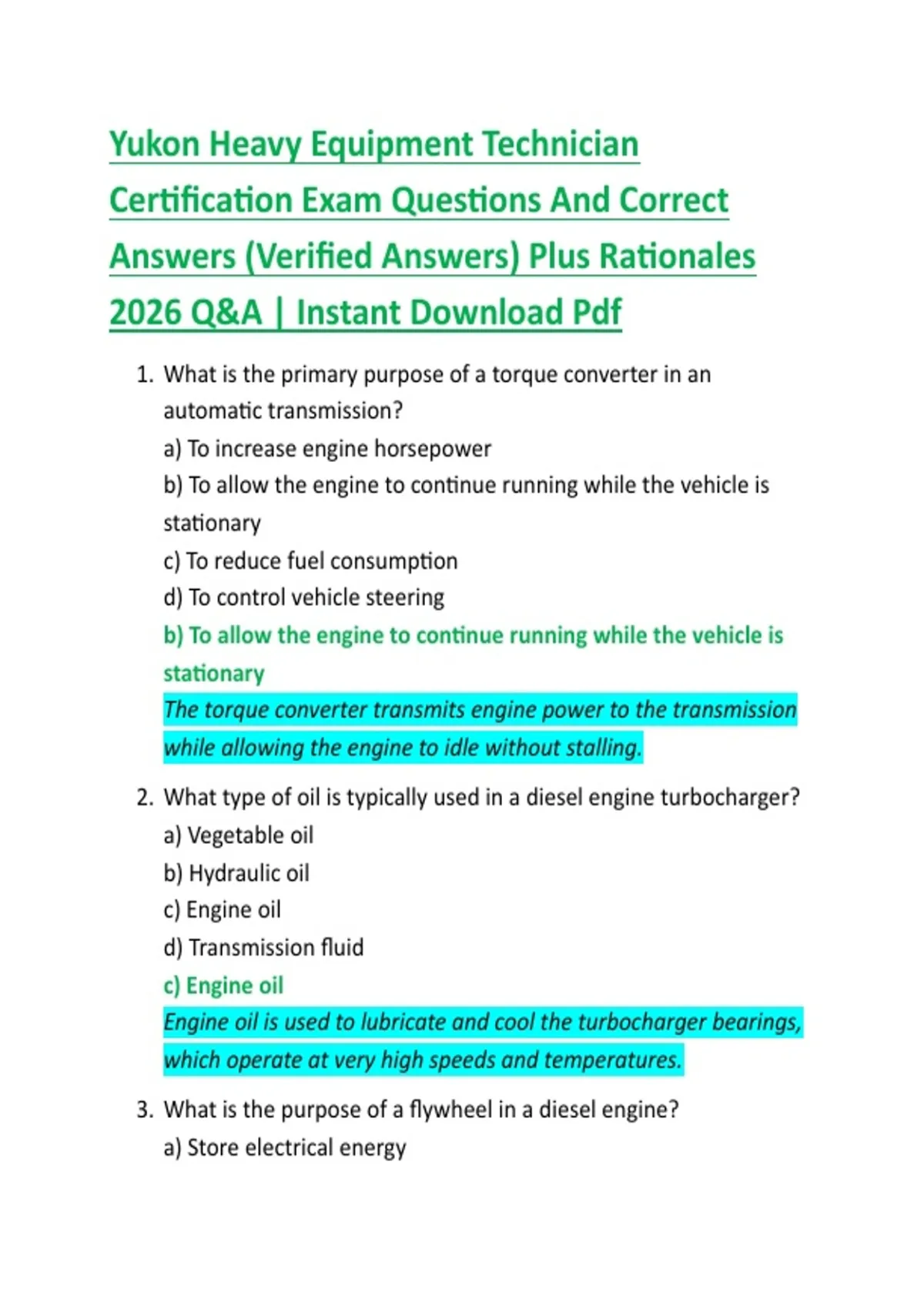 Yukon Heavy Equipment Technician Certification Exam Questions And Correct Answers (Verified Answers) Plus Rationales 2026 Q&A | Instant Download Pdf