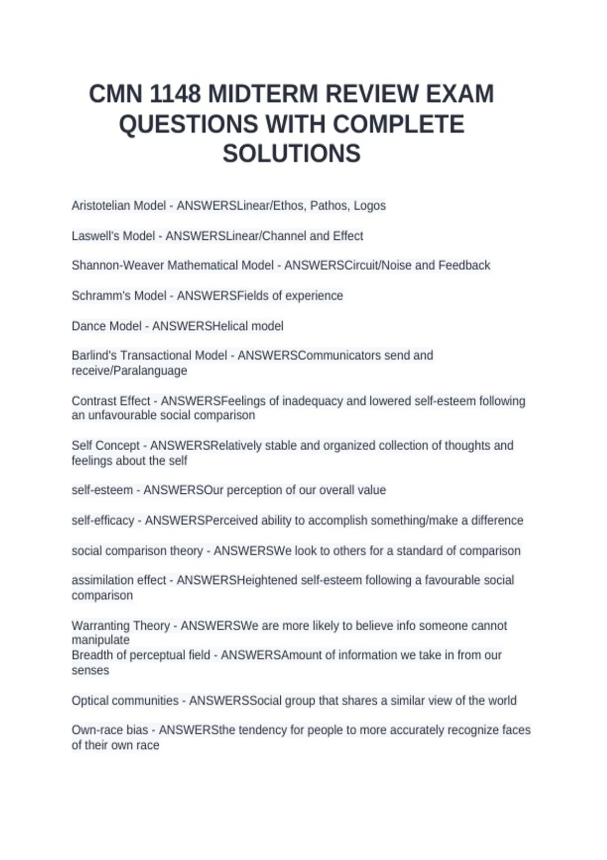 CMN 1148 MIDTERM REVIEW EXAM QUESTIONS WITH COMPLETE SOLUTIONS