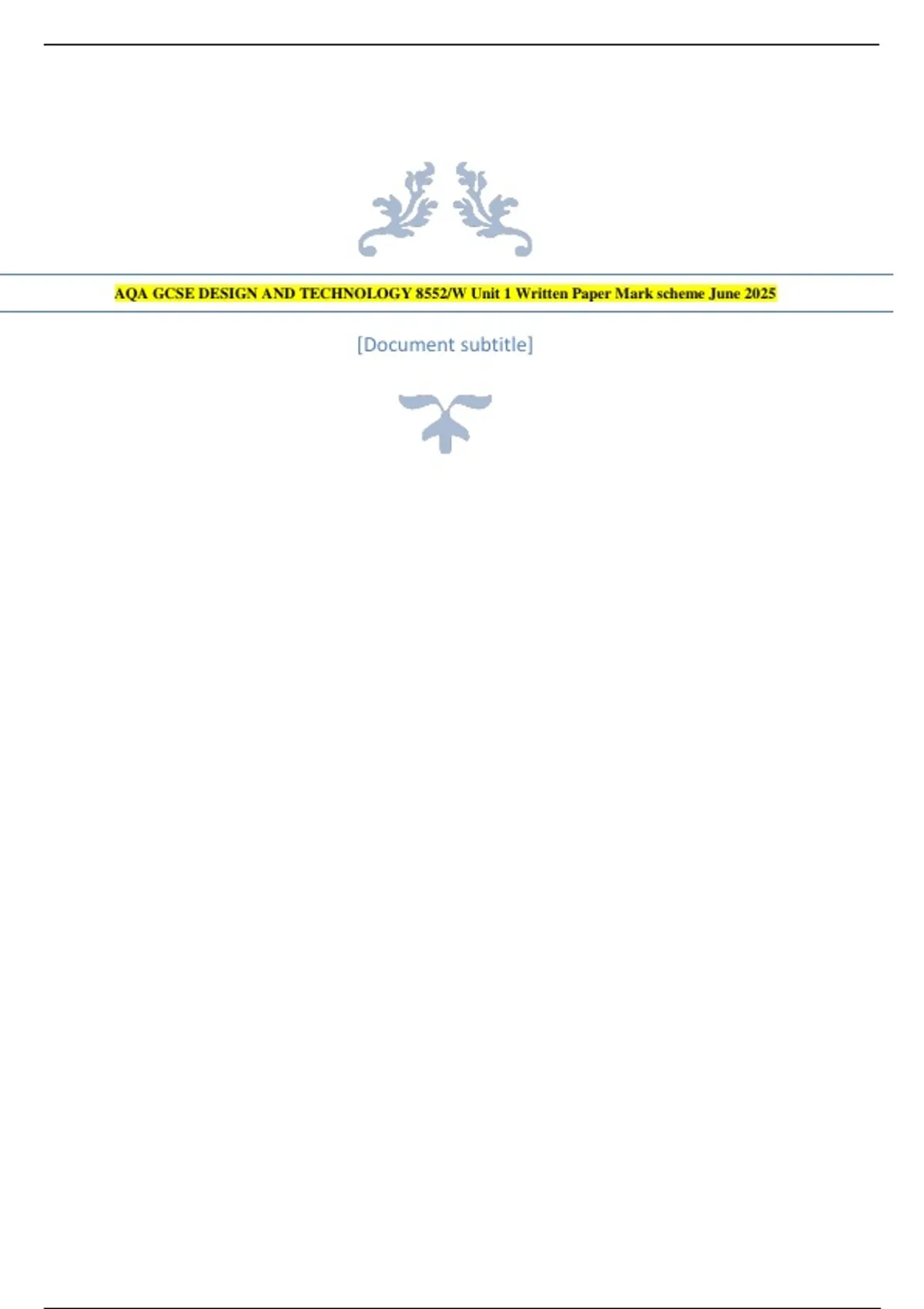 AQA GCSE DESIGN AND TECHNOLOGY 8552/W Unit 1 Written Paper Mark scheme June 2025