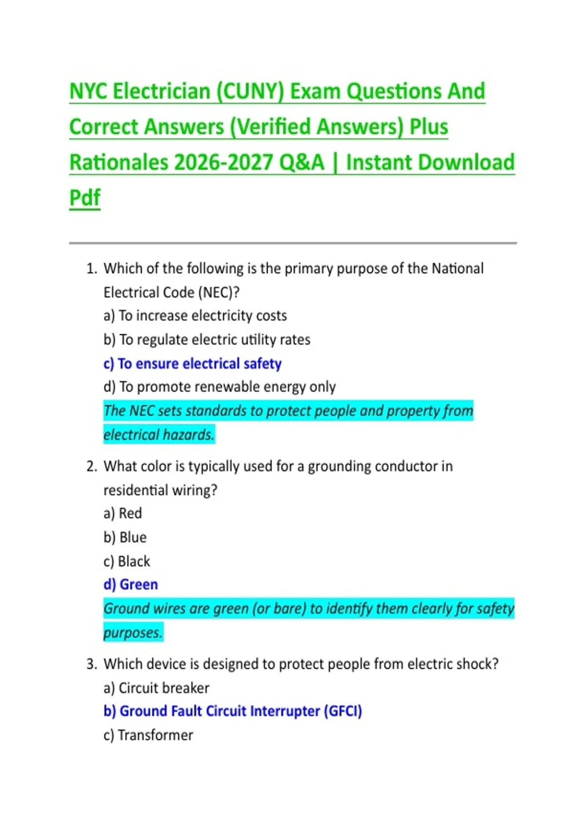 NYC Electrician (CUNY) Exam Questions And Correct Answers (Verified Answers) Plus Rationales Q&A | Instant Download Pdf
