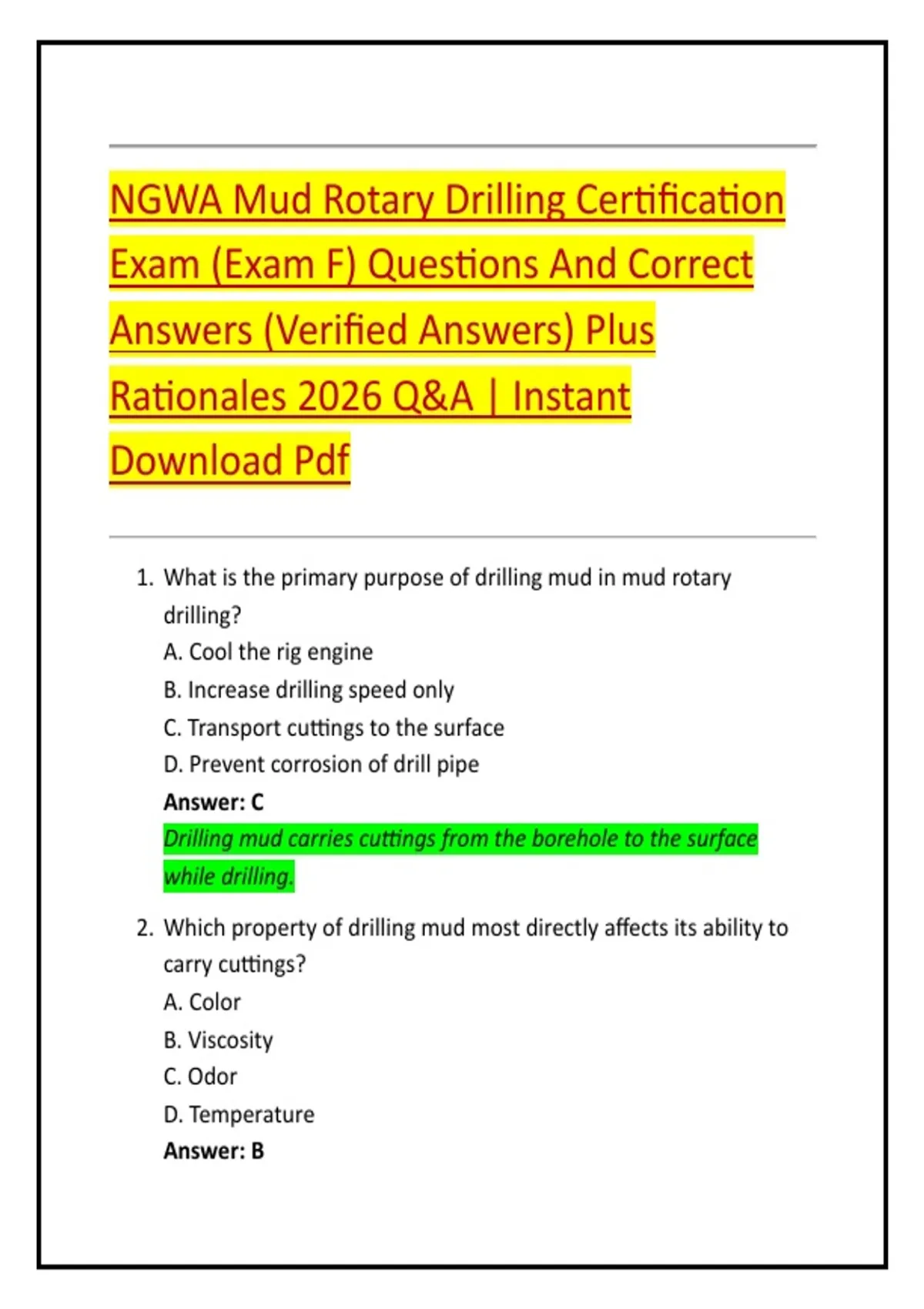 2. Which property of drilling mud most directly affects its ability to