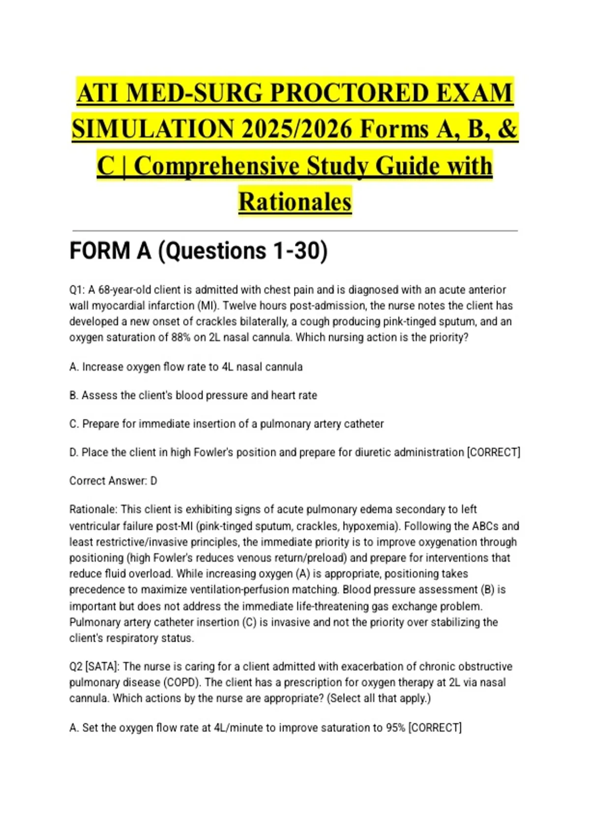 Q1: A 68-year-old client is admitted with chest pain and is diagnosed with an acute anterior