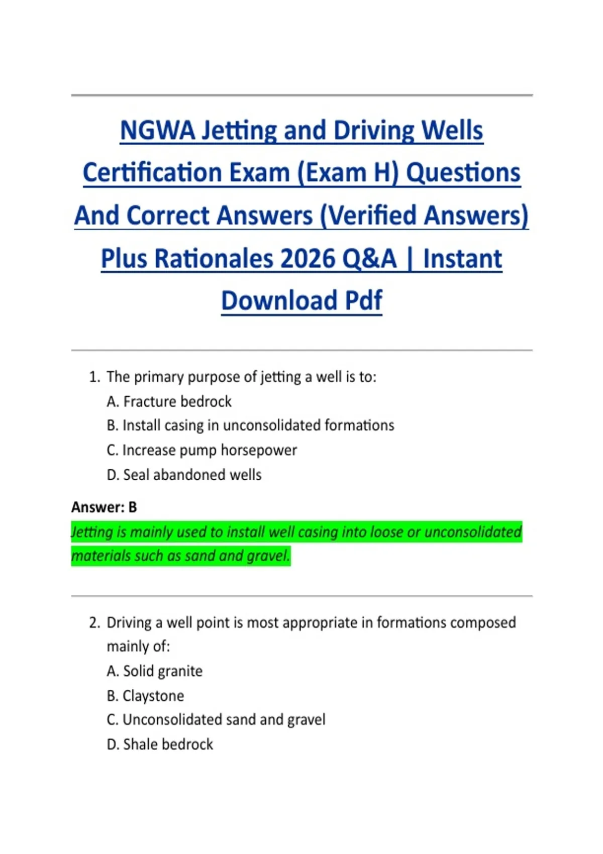 Jetting is mainly used to install well casing into loose or unconsolidated
