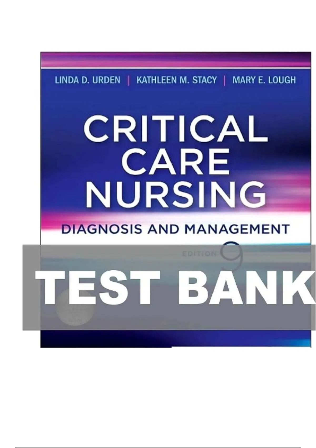 TEST BANK FOR Critical Care Nursing: Diagnosis and Management 9th Edition by Linda D. Urden, Kathleen M. Stacy ISBN:978-0323642958 COMPLETE GUIDE ALL CHAPTERS COVERED 100% VERIFIED A+ GRADE ASSURED!!!!NEW LATEST UPDATE!!!!!!