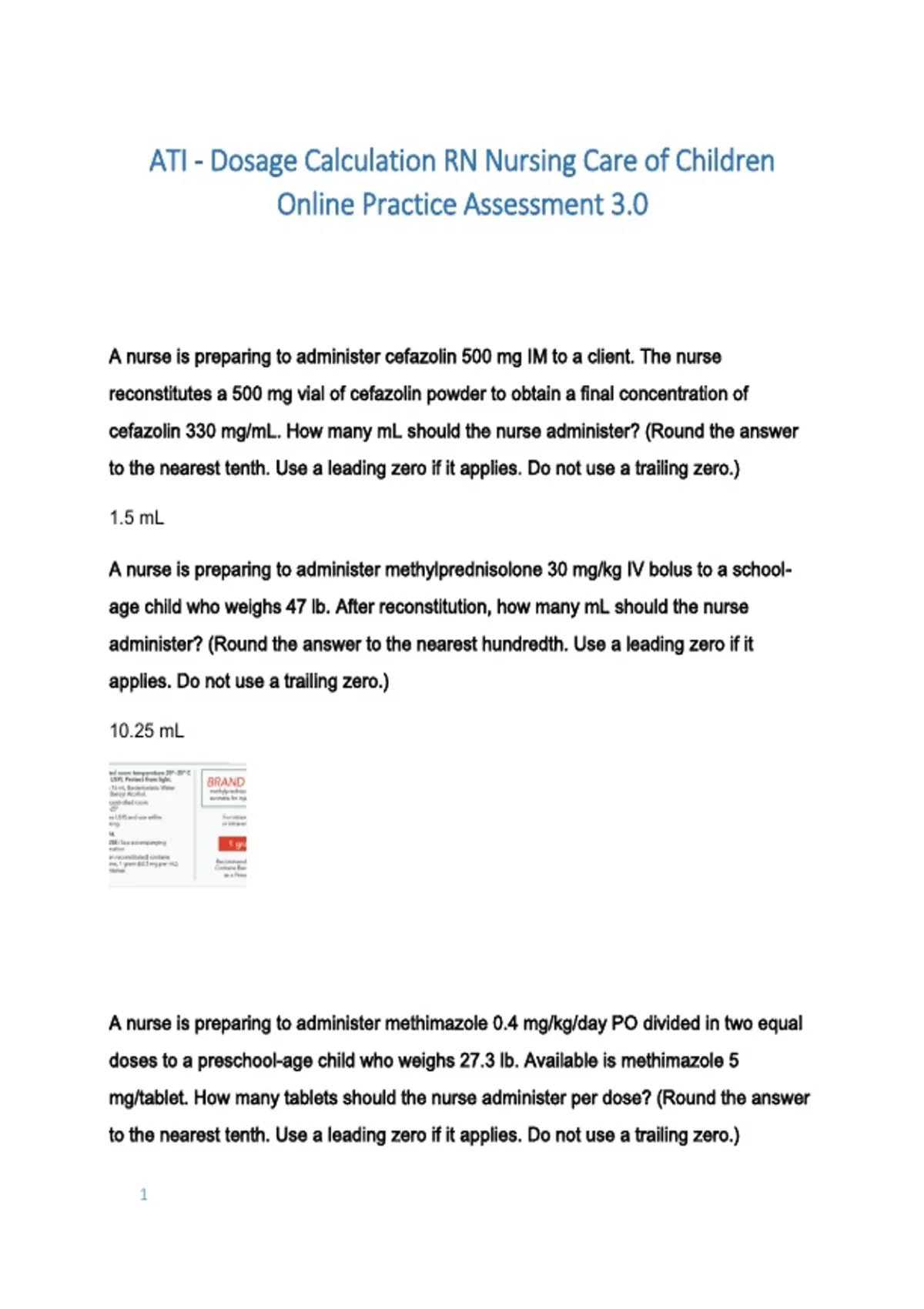 1 ATI - DOSAGE CALCULATION RN NURSING CARE OF CHILDREN ONLINE PRACTICE ASSESSMENT