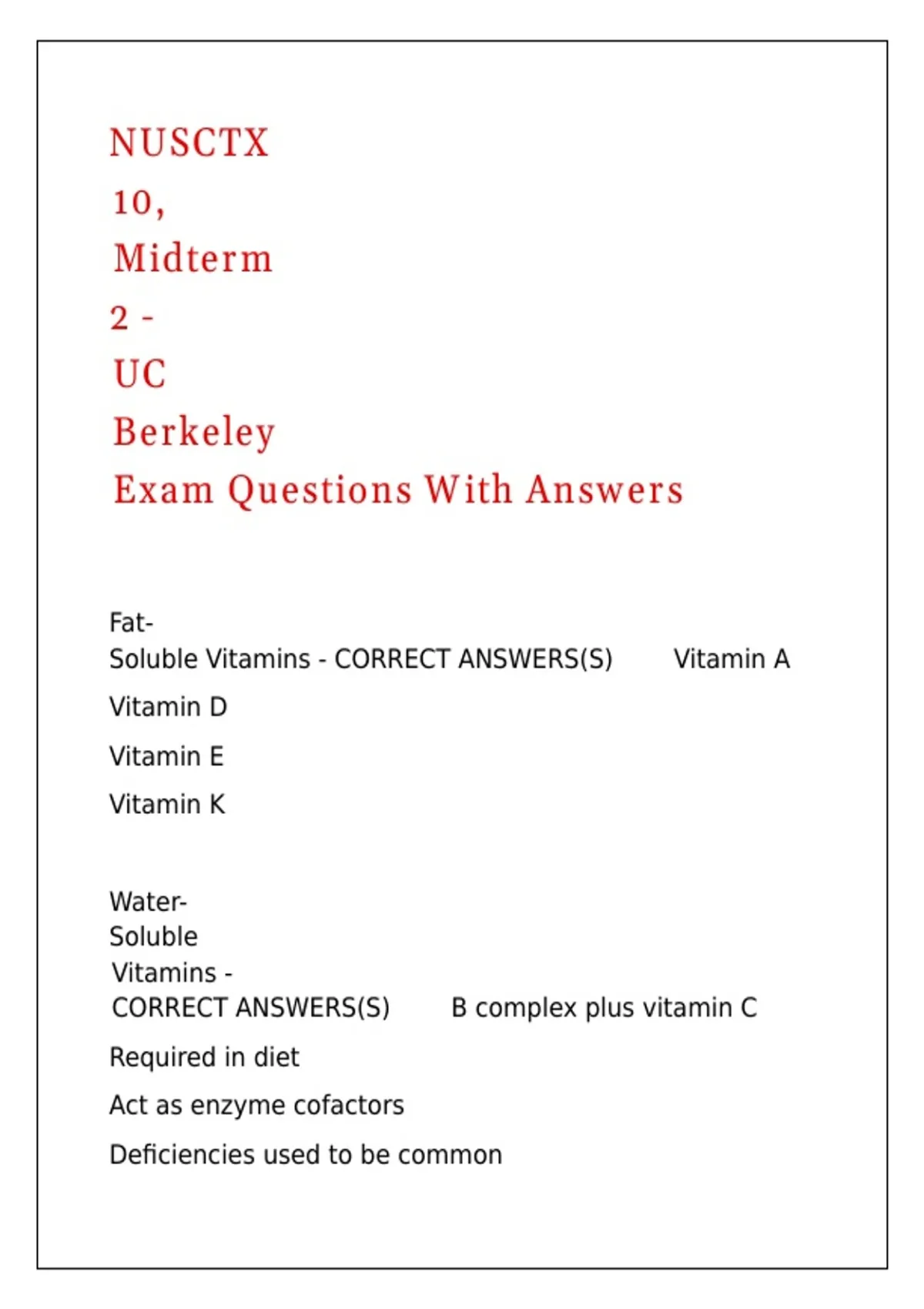 NUSCTX 10, Midterm 2 - UC Berkeley Exam Questions With Answers