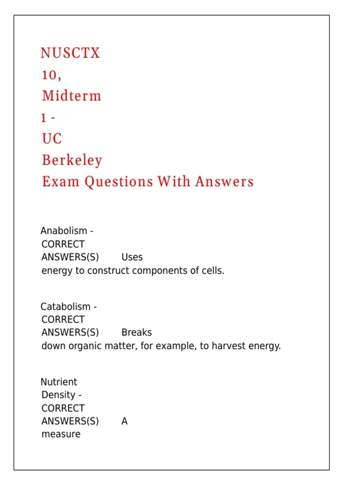 Metabolism - CORRECT ANSWERS(S)✅✅The set of life- // // // // // //