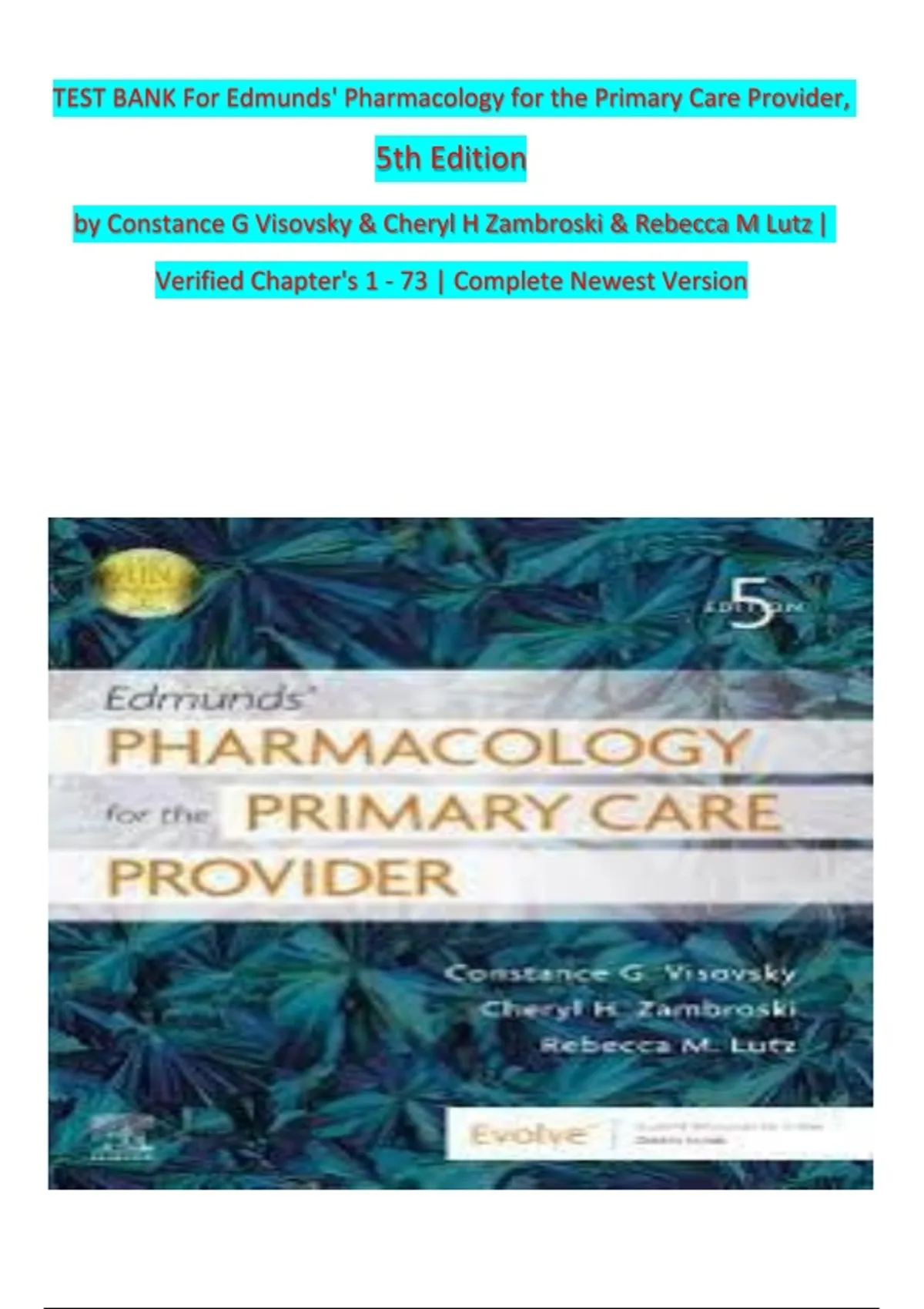 TEST BANK For Edmunds' Pharmacology for the Primary Care Provider,