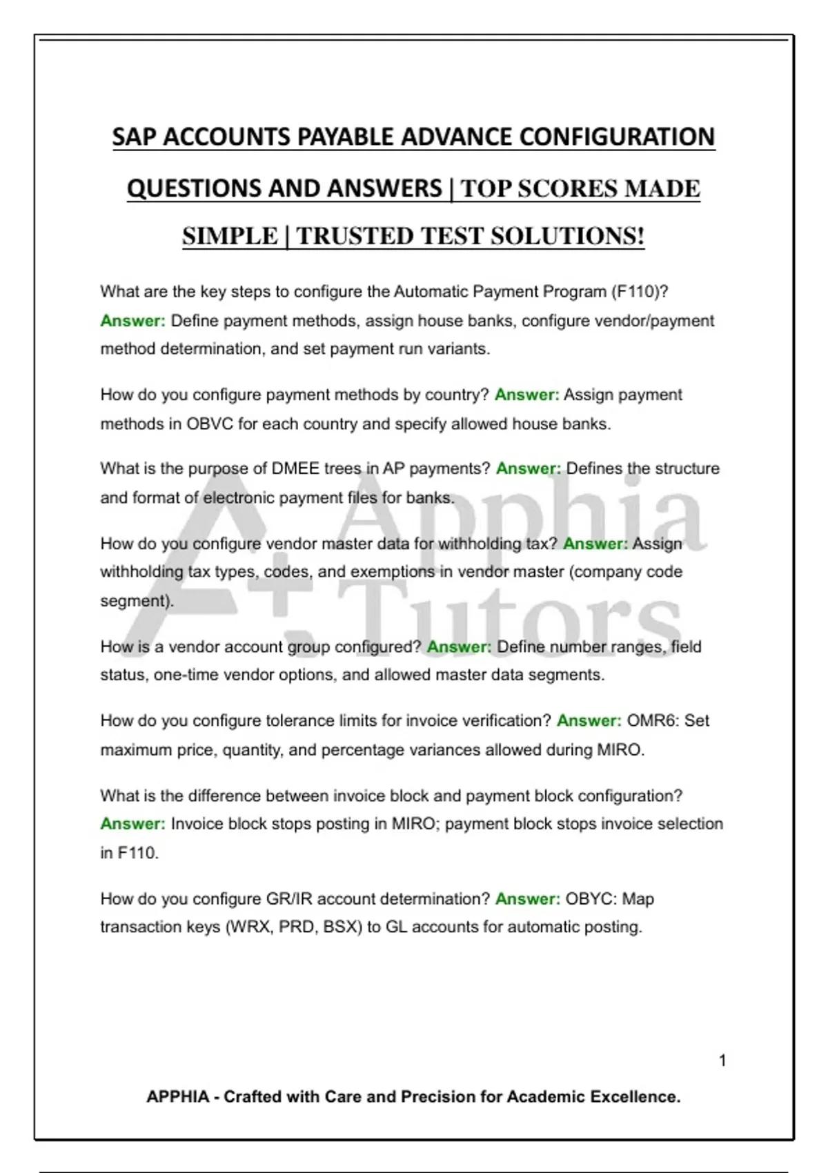 SAP ACCOUNTS PAYABLE ADVANCE CONFIGURATION QUESTIONS AND ANSWERS | TOP SCORES MADE SIMPLE | TRUSTED TEST SOLUTIONS