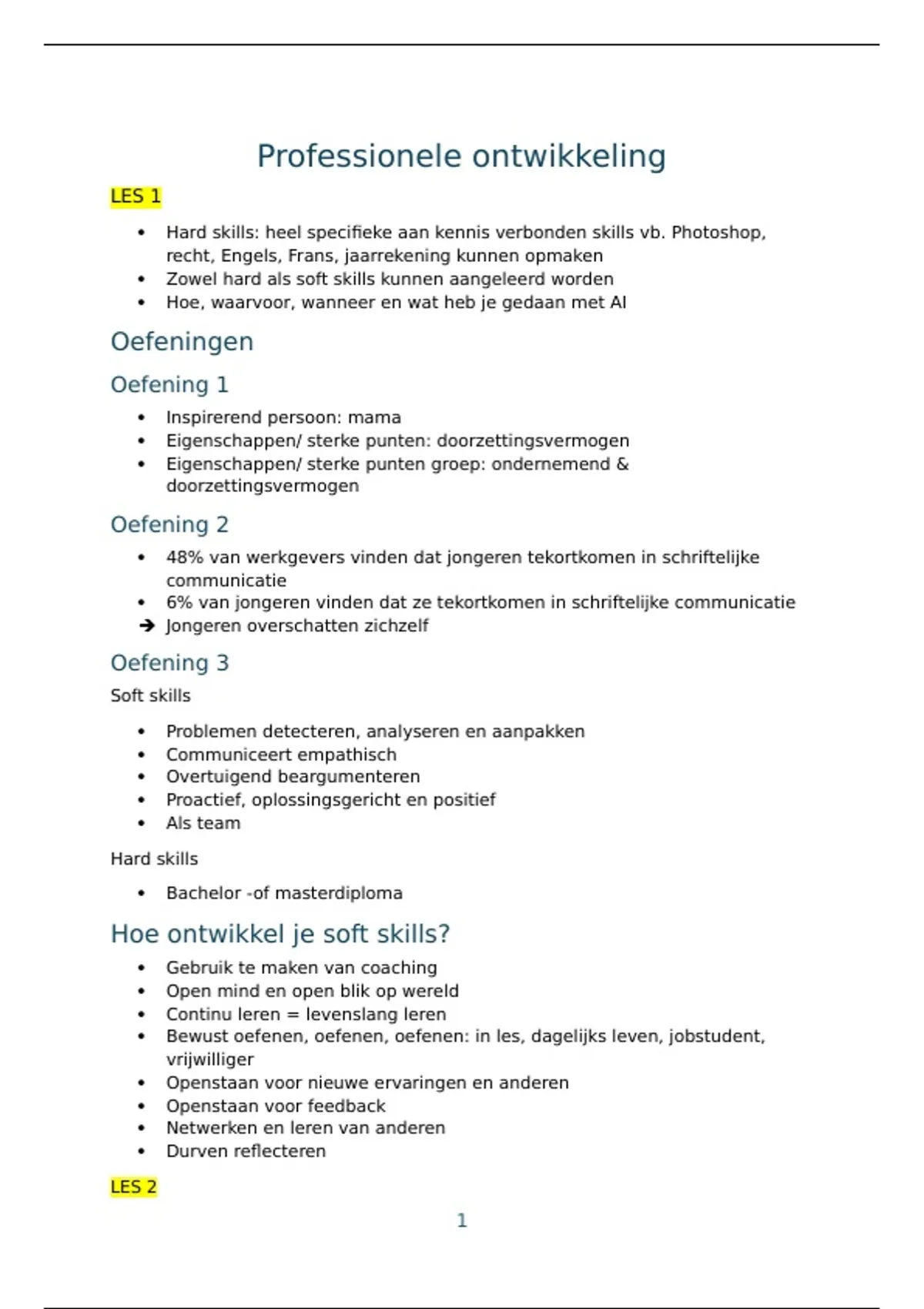 Samenvatting van 8 pagina's voor het vak Professionele ontwikkeling aan de Artevelde (notities uit de les)