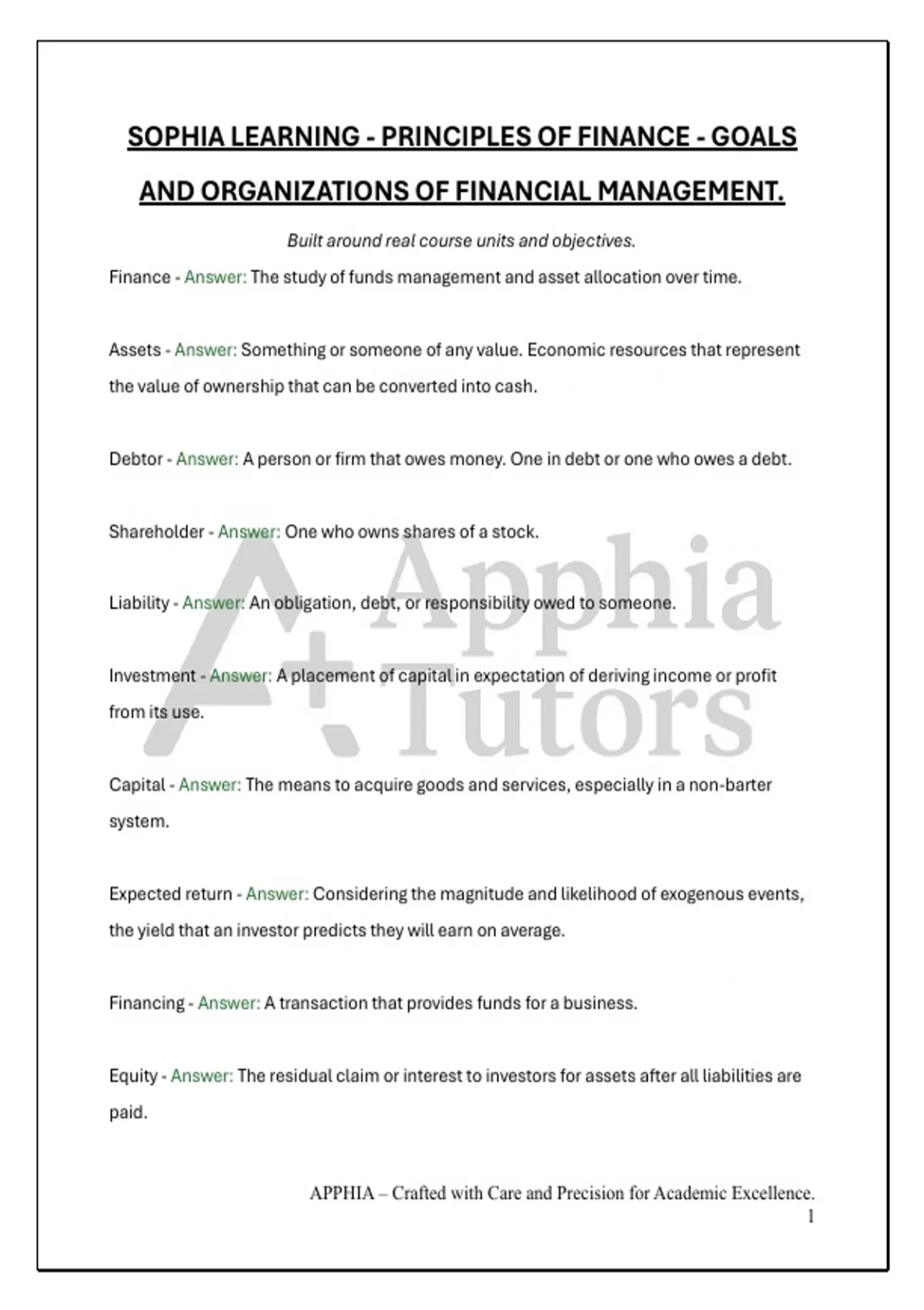Apphia Tutors is your all-in-one global study guide hub — built to make learning simple, smart, and rewarding. We bring together thousands of high-quality study materials, topic-specific notes, and verified answers designed to help students master every subject with ease. Whether you’re in high school, college, or university, Apphia Tutors has everything you need — from clear explanations to exam-ready practice questions. Our goal is to turn studying into a confident, stress-free journey toward success. Trusted by learners and educators worldwide, Apphia Tutors is where great grades begin and excellence grows.