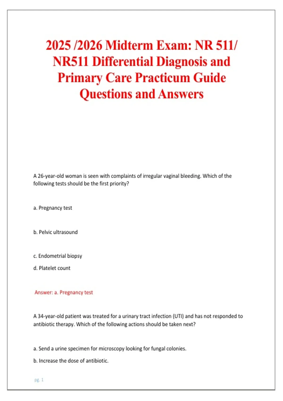 Prepare for the NR 511 Midterm Exam (2025–2026) in Differential Diagnosis and Primary Care with comprehensive practice questions, verified answers, and detailed solutions for advanced nursing exam success.