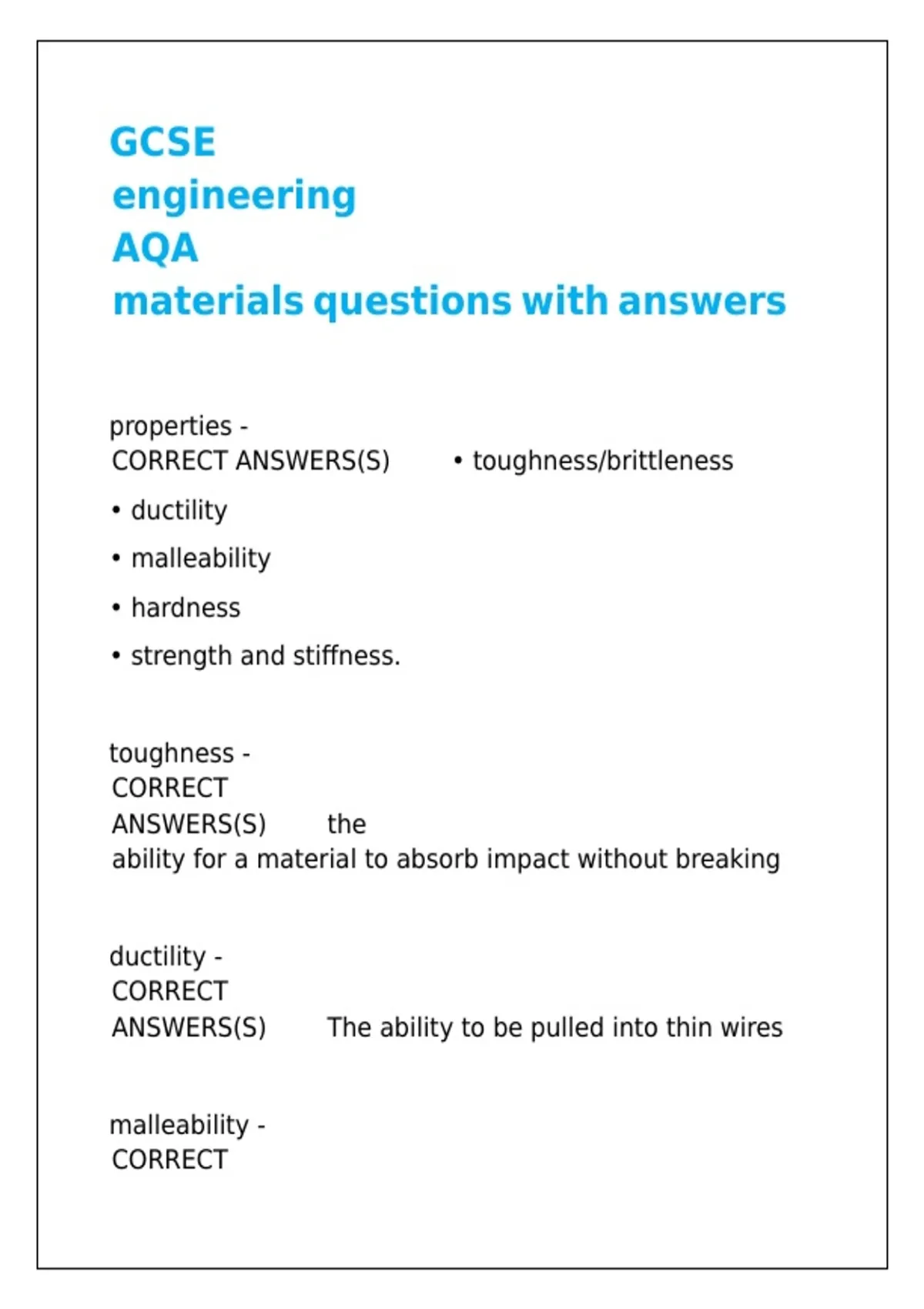 GCSE engineering AQA materials questions with answers