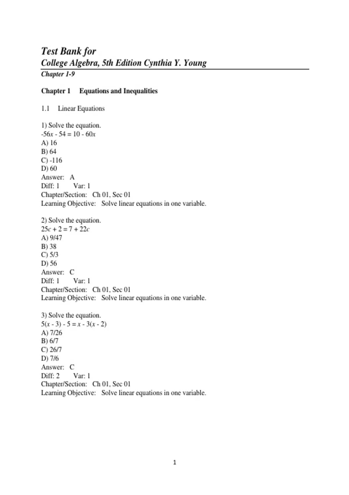 Test bank for college algebra 5th edition cynthia y young Page 3 of 176 2/1/2026