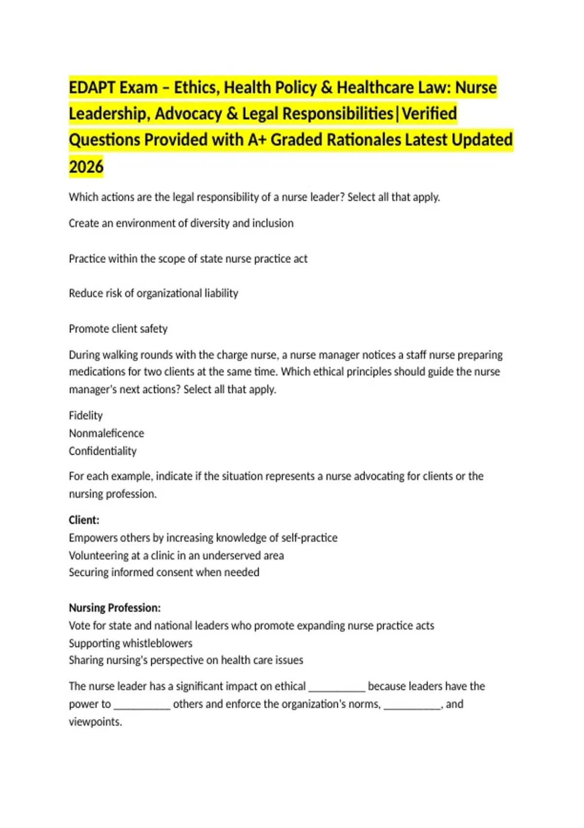 Leadership, Advocacy & Legal Responsibilities|Verified