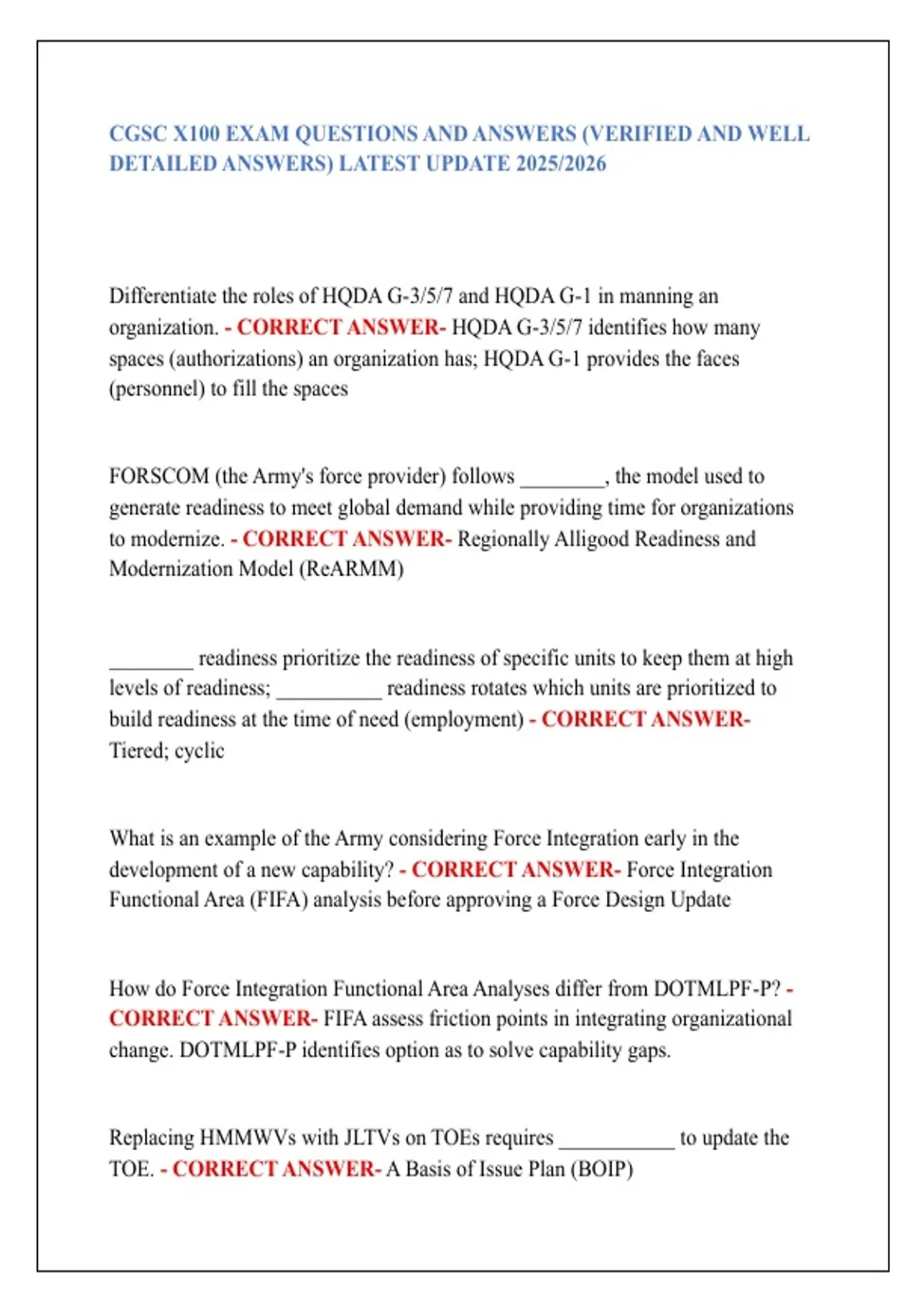 CORRECT ANSWER- Joint Staff J-8; HQDA G-8