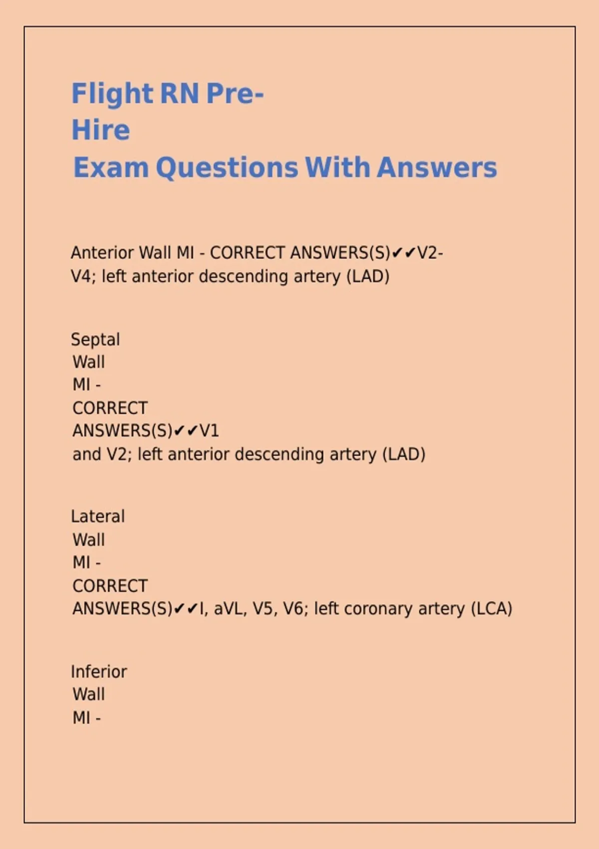 Anterior Wall MI - CORRECT ANSWERS(S)✔✔V2-