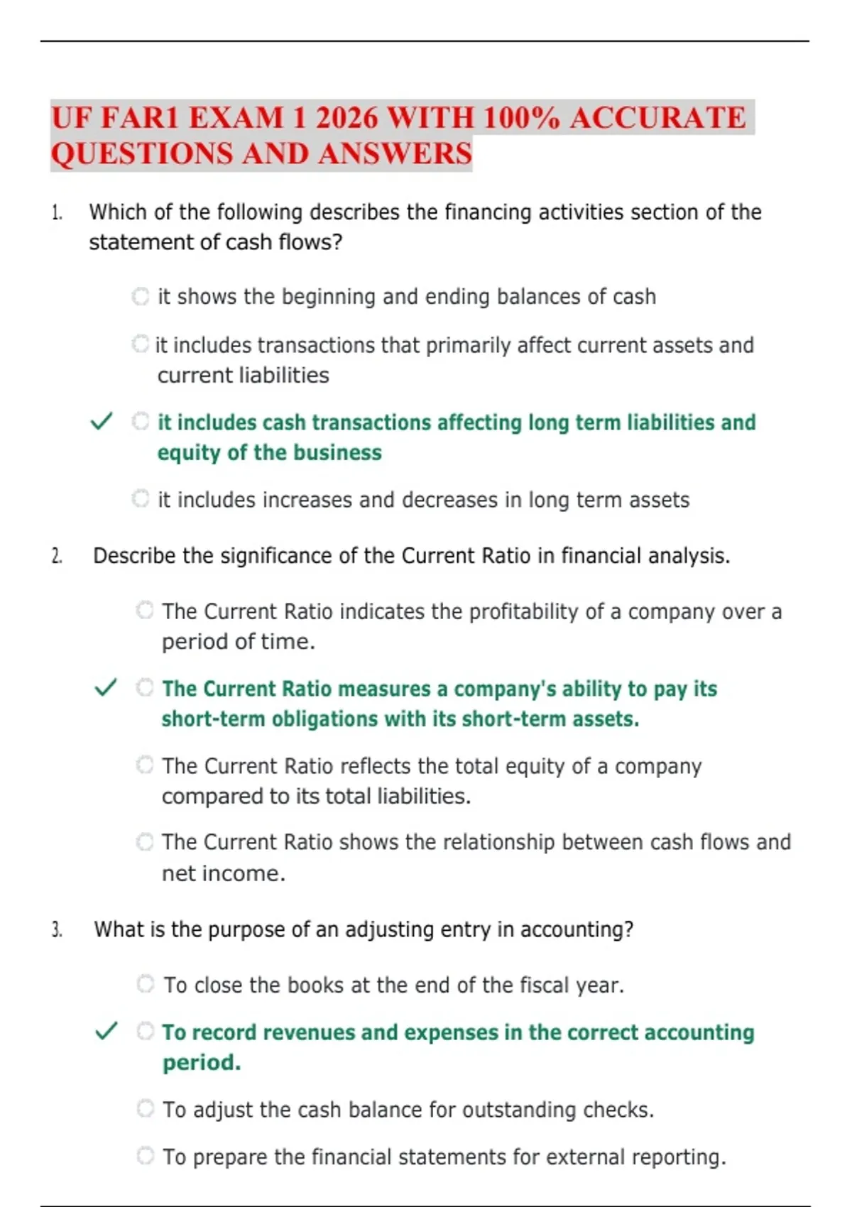 UF FAR1 EXAM 1 2026 WITH 100% ACCURATE QUESTIONS AND ANSWERS