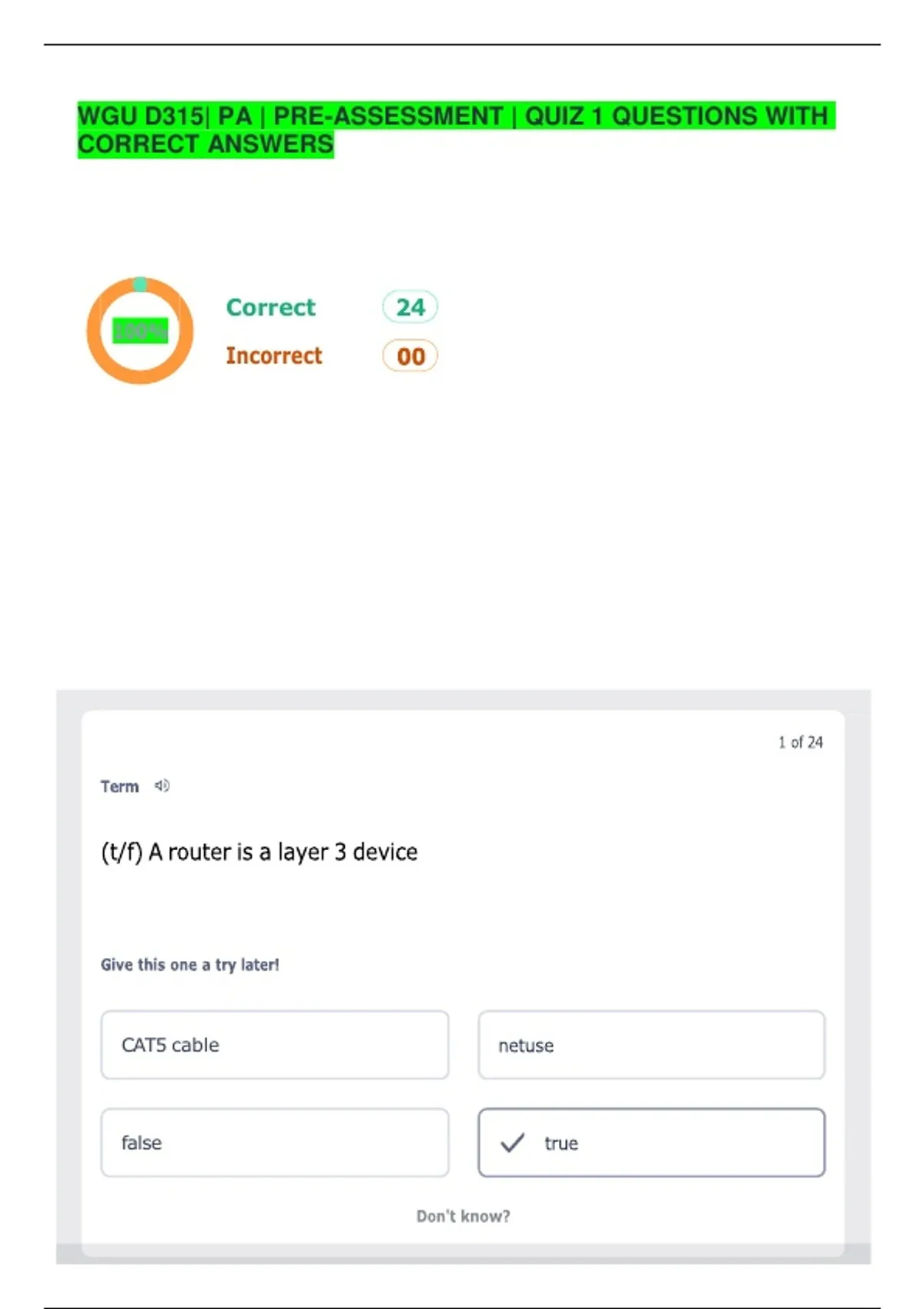 WGU D315| PA | PRE-ASSESSMENT | QUIZ 1 QUESTIONS WITH