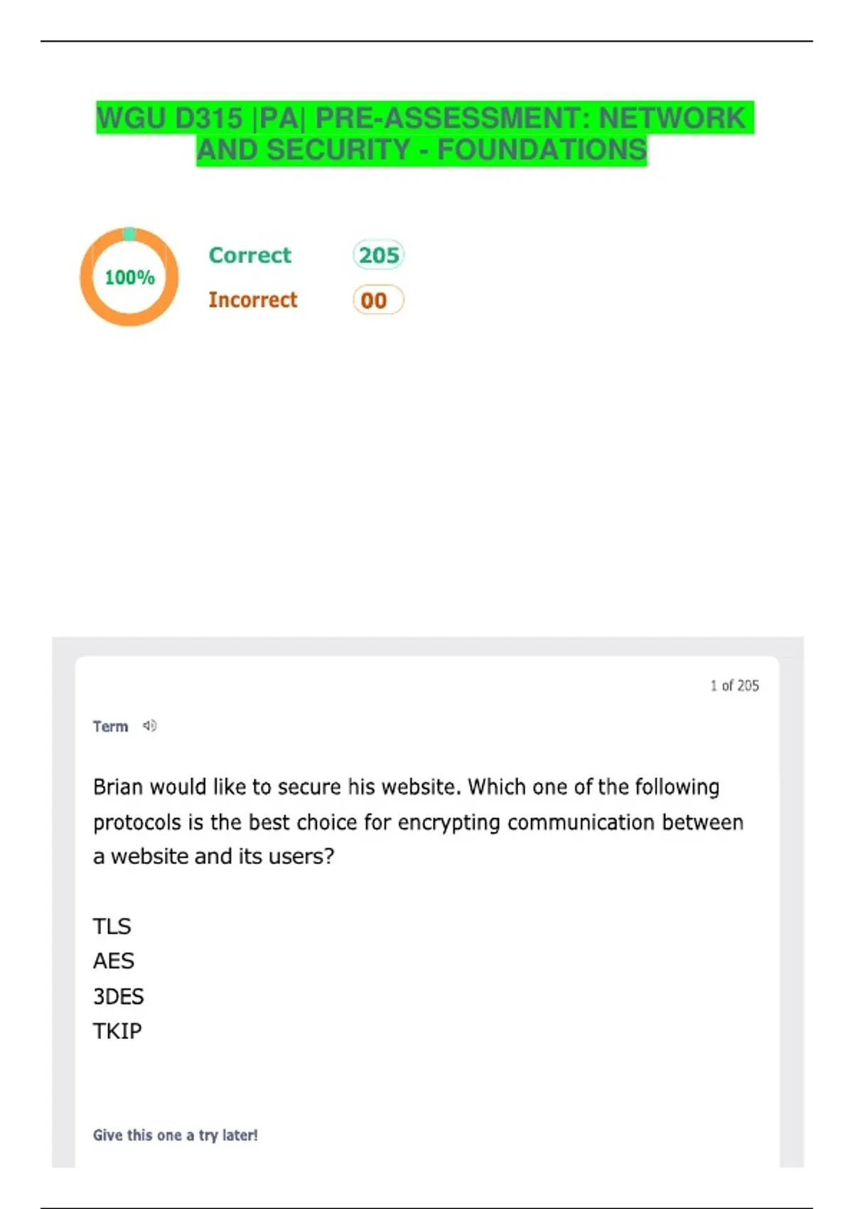 WGU D315 |PA| PRE-ASSESSMENT| NETWORK AND SECURITY - FOUNDATIONS| EXAM QUESTIONS AND ANSWERS | LATEST UPDATE | GRADED A