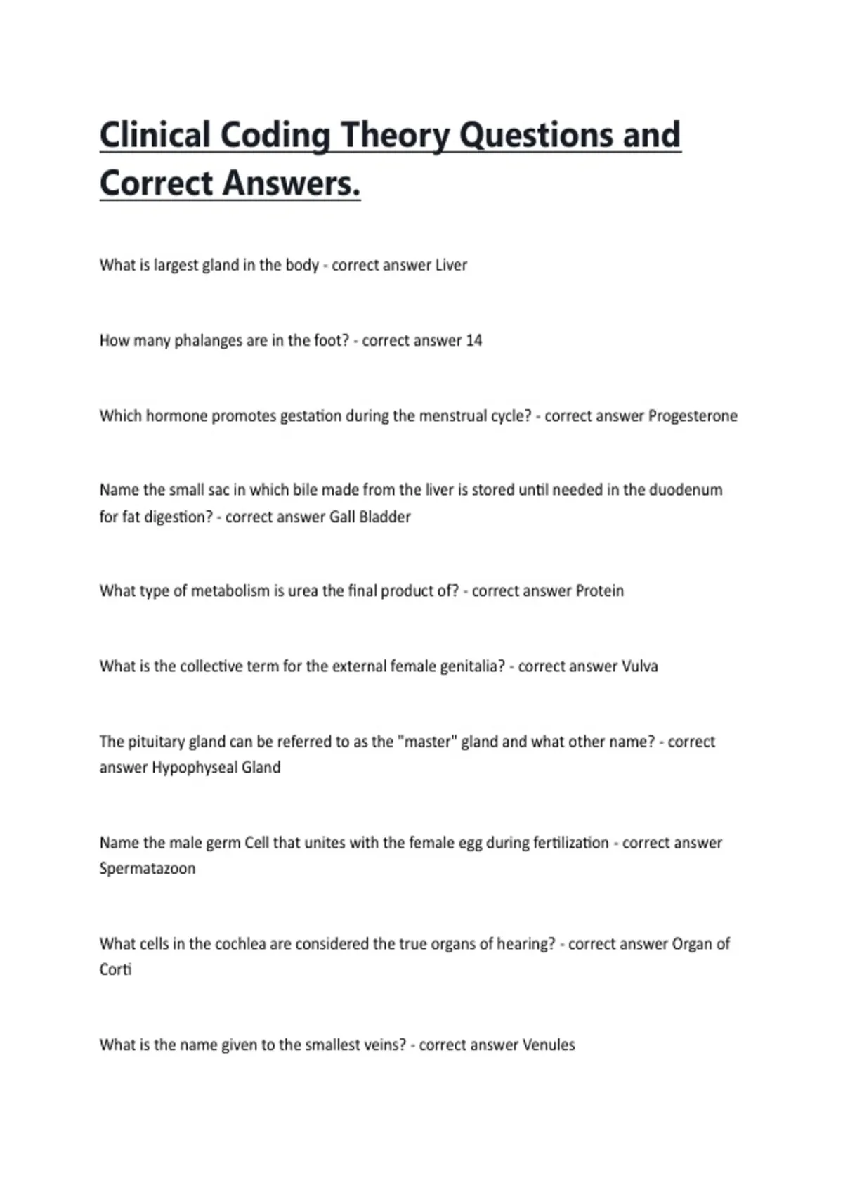 Clinical Coding Theory Questions and Correct Answers.