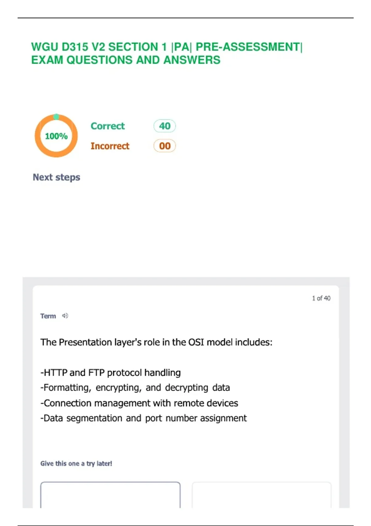 WGU D315 V2 SECTION 1 |PA |PRE-ASSESSMENT| EXAM QUESTIONS AND ANSWERS