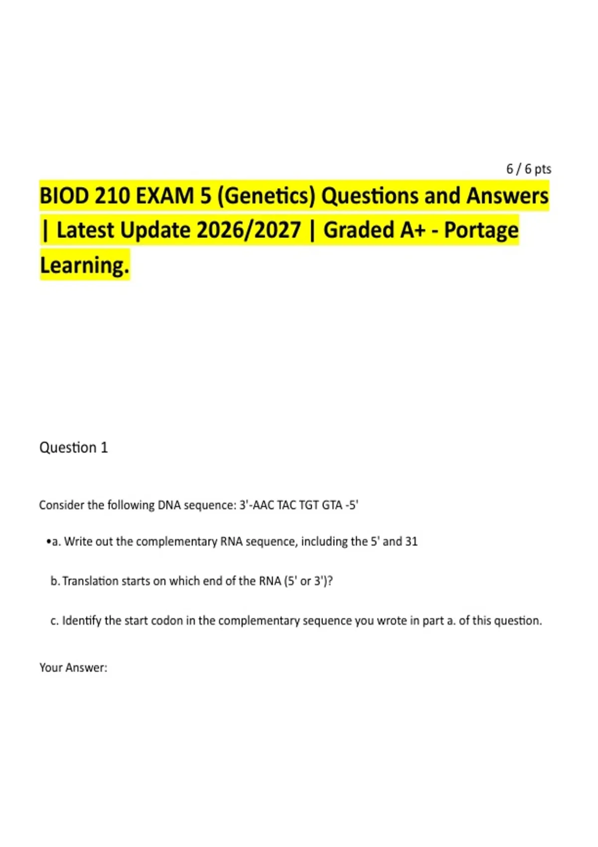 BIOD 210 EXAM 5 (Genetics) Questions and Answers