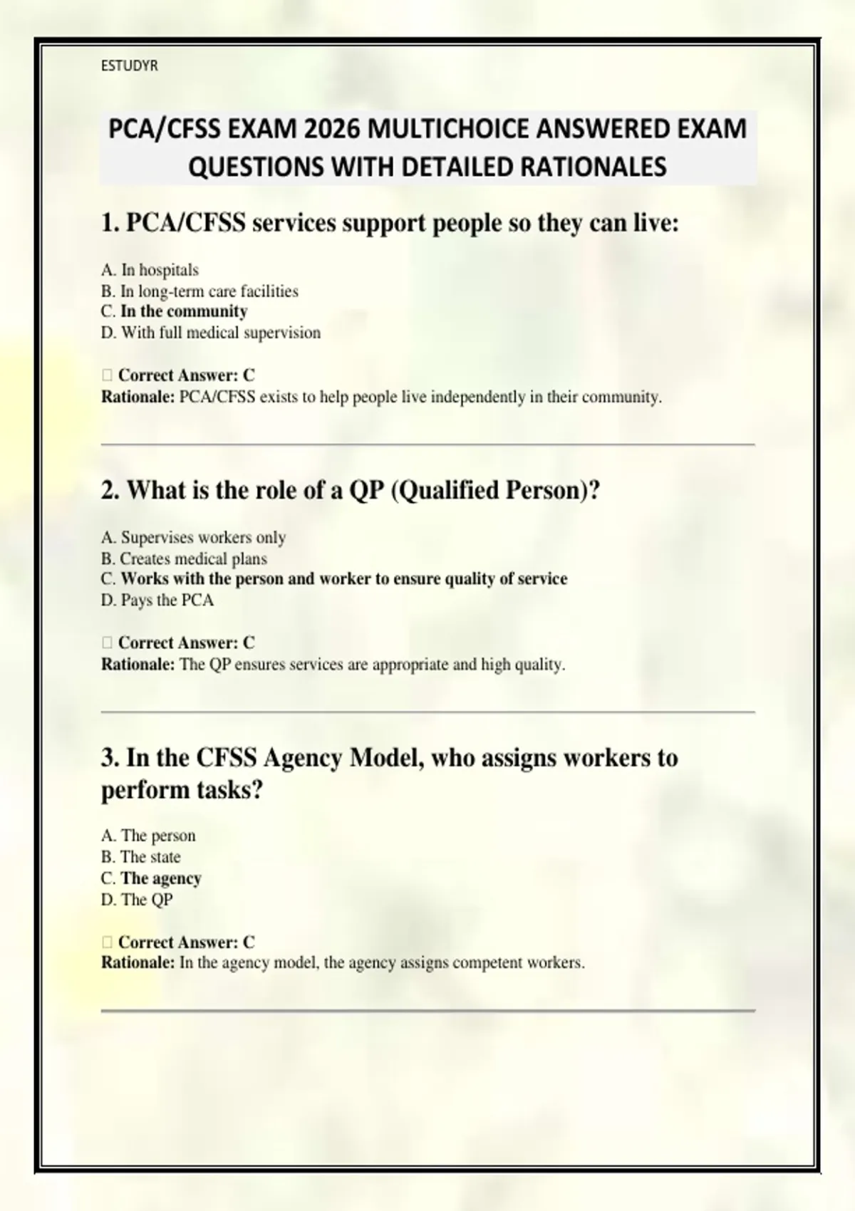 PCA/CFSS EXAM 2026 MULTICHOICE ANSWERED EXAM