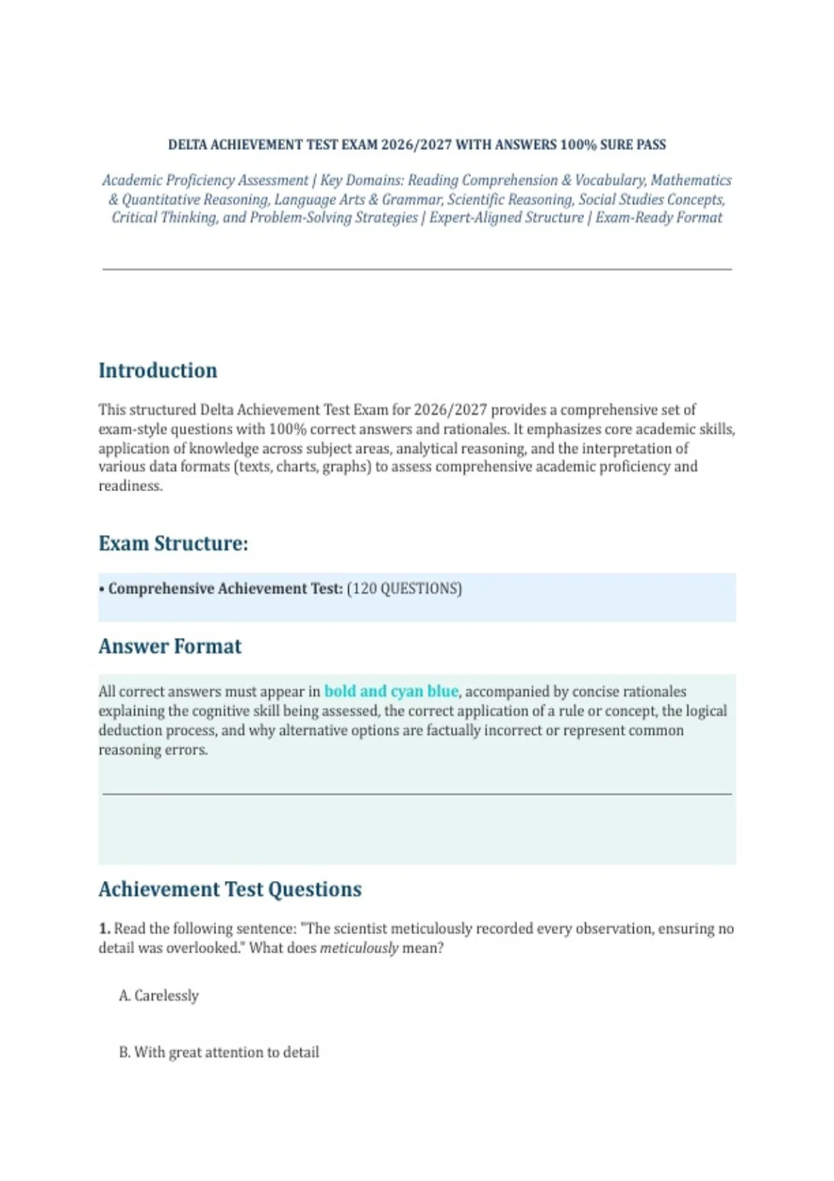 This structured Delta Achievement Test Exam for 2026/2027 provides a comprehensive set of