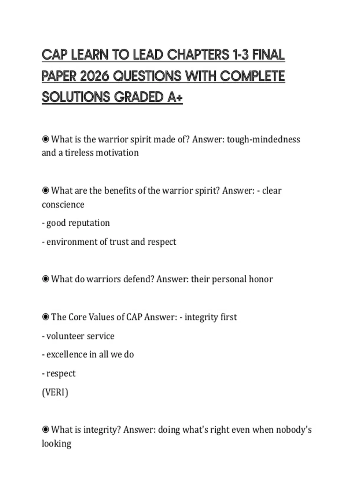 CAP LEARN TO LEAD CHAPTERS 1-3 FINAL PAPER 2026 QUESTIONS WITH COMPLETE SOLUTIONS GRADED A+