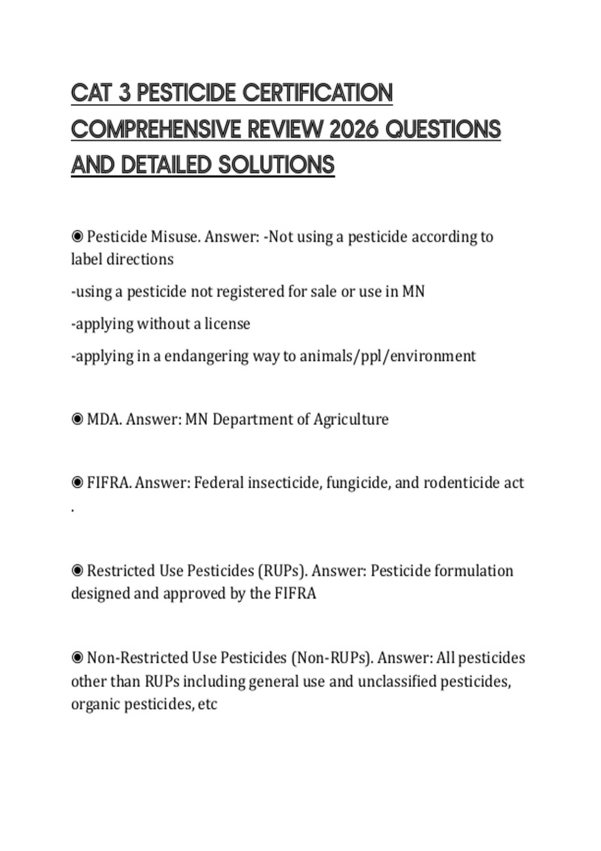 CAT 3 PESTICIDE CERTIFICATION COMPREHENSIVE REVIEW 2026 QUESTIONS AND DETAILED SOLUTIONS