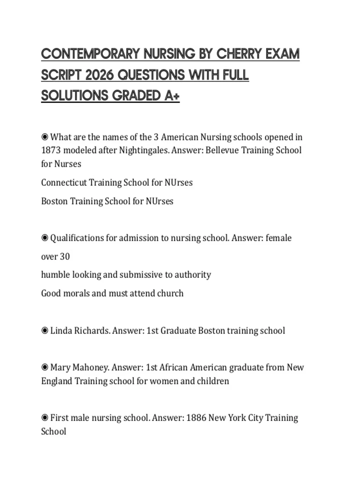 CONTEMPORARY NURSING BY CHERRY EXAM