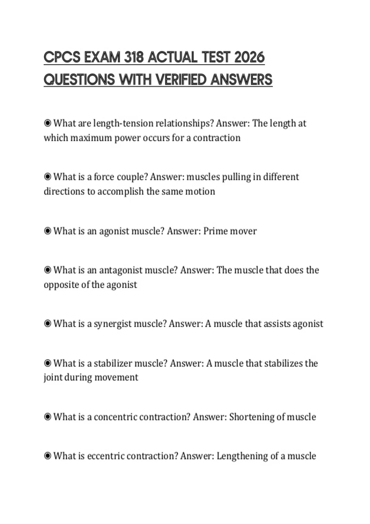 CPCS EXAM 318 ACTUAL TEST 2026 QUESTIONS WITH VERIFIED ANSWERS