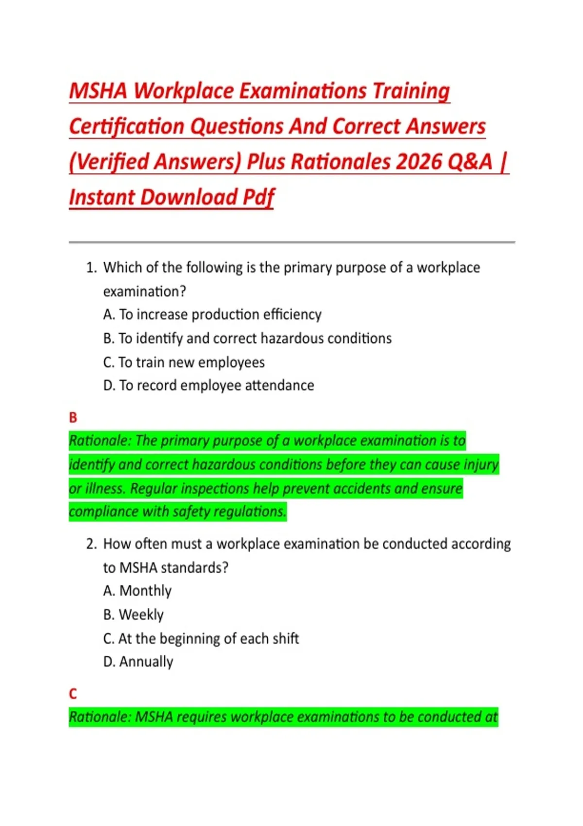 Rationale: MSHA requires workplace examinations to be conducted at