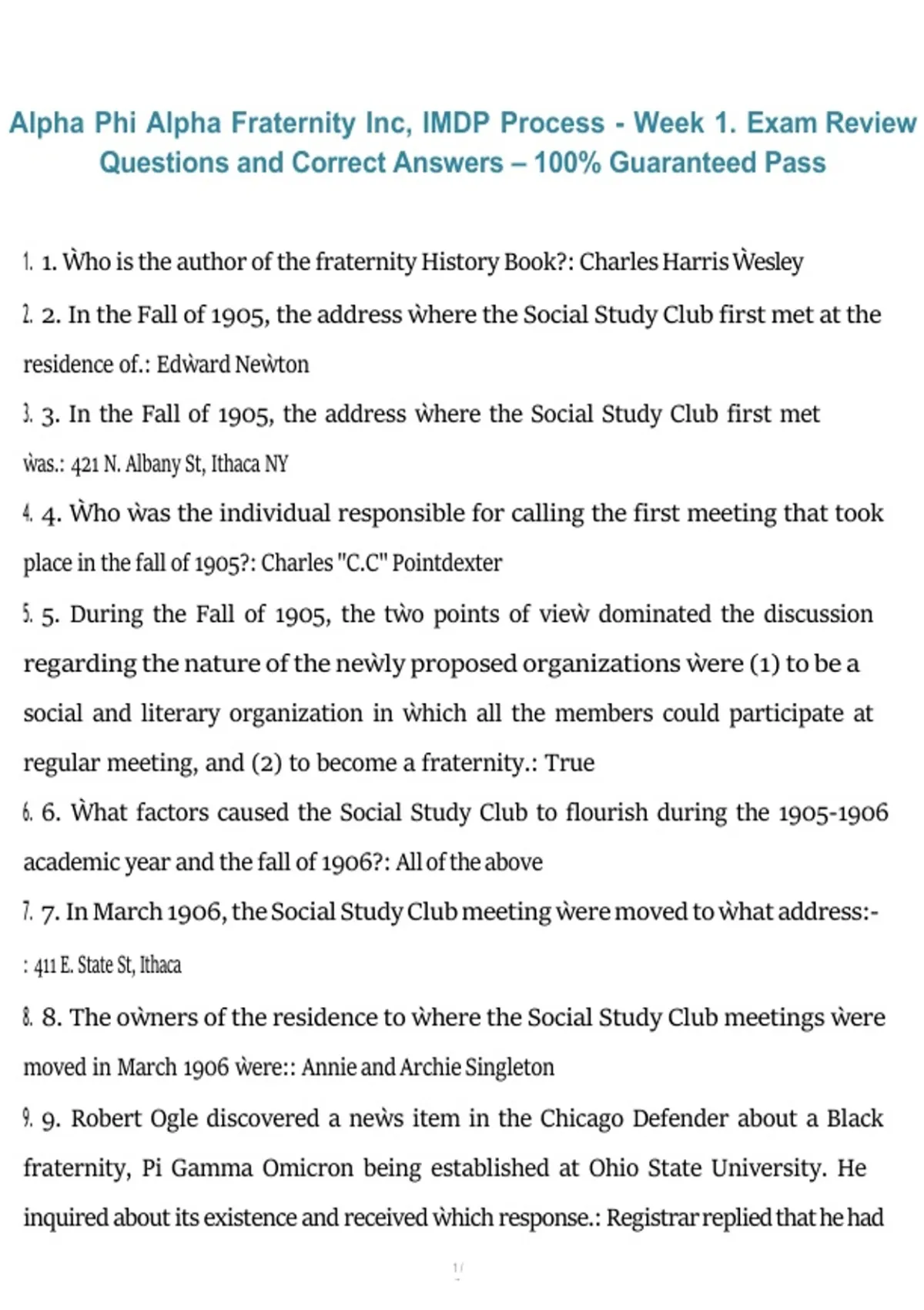 1. 1. Ẁho is the author of the fraternity History Book?: Charles Harris Ẁesley