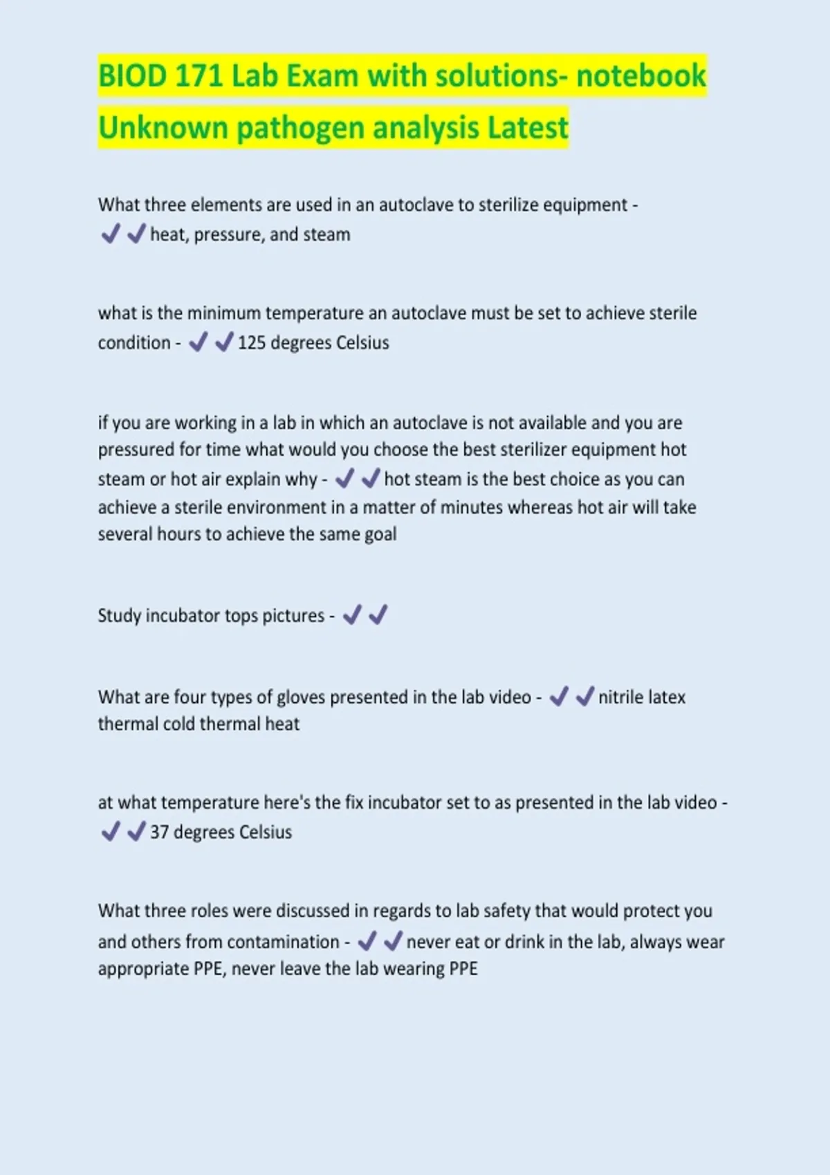 BIOD 171 Lab Exam with solutions- notebook Unknown pathogen analysis Latest Update
