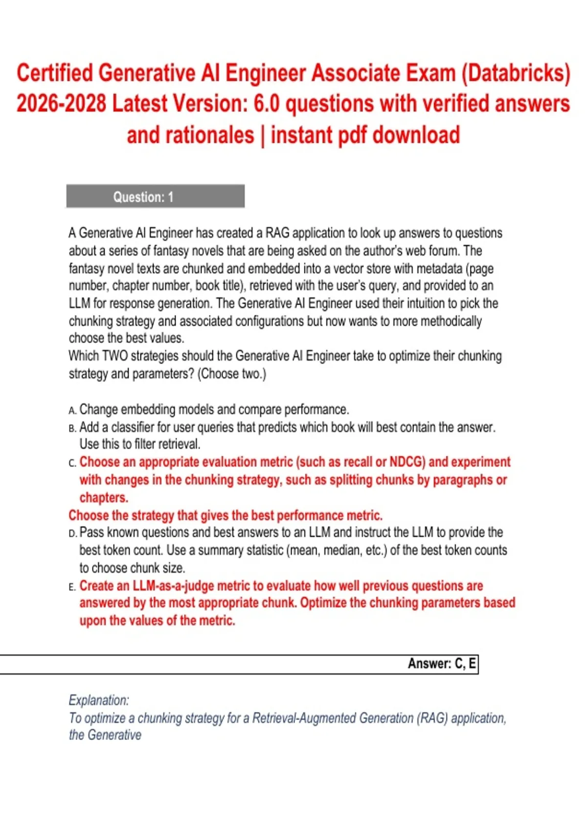 coherent LLM responses. Here's why C and E are the correct strategies: