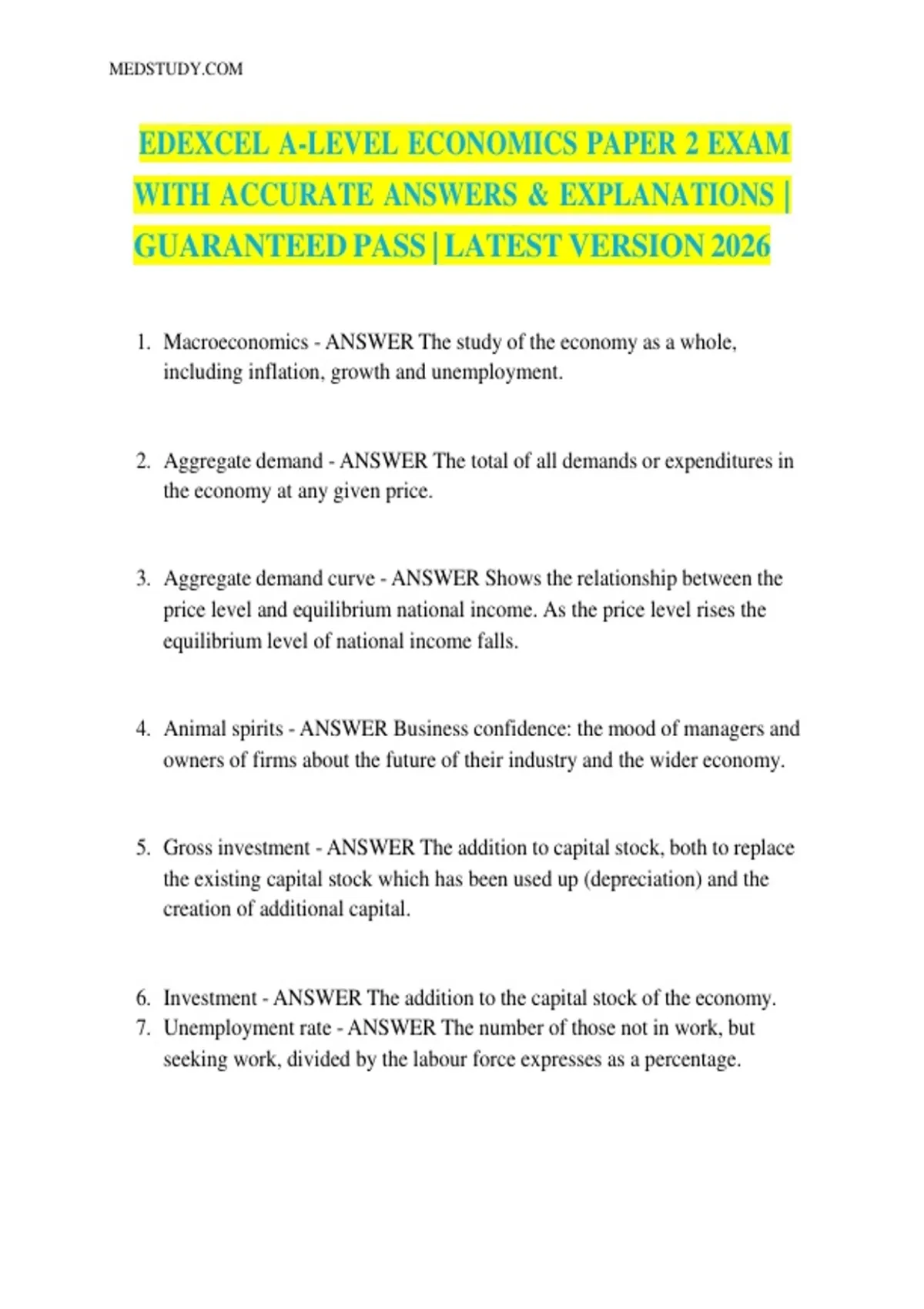 EDEXCEL A-LEVEL ECONOMICS PAPER 2 EXAM WITH ACCURATE ANSWERS & EXPLANATIONS | GUARANTEED PASS | LATEST VERSION 2026
