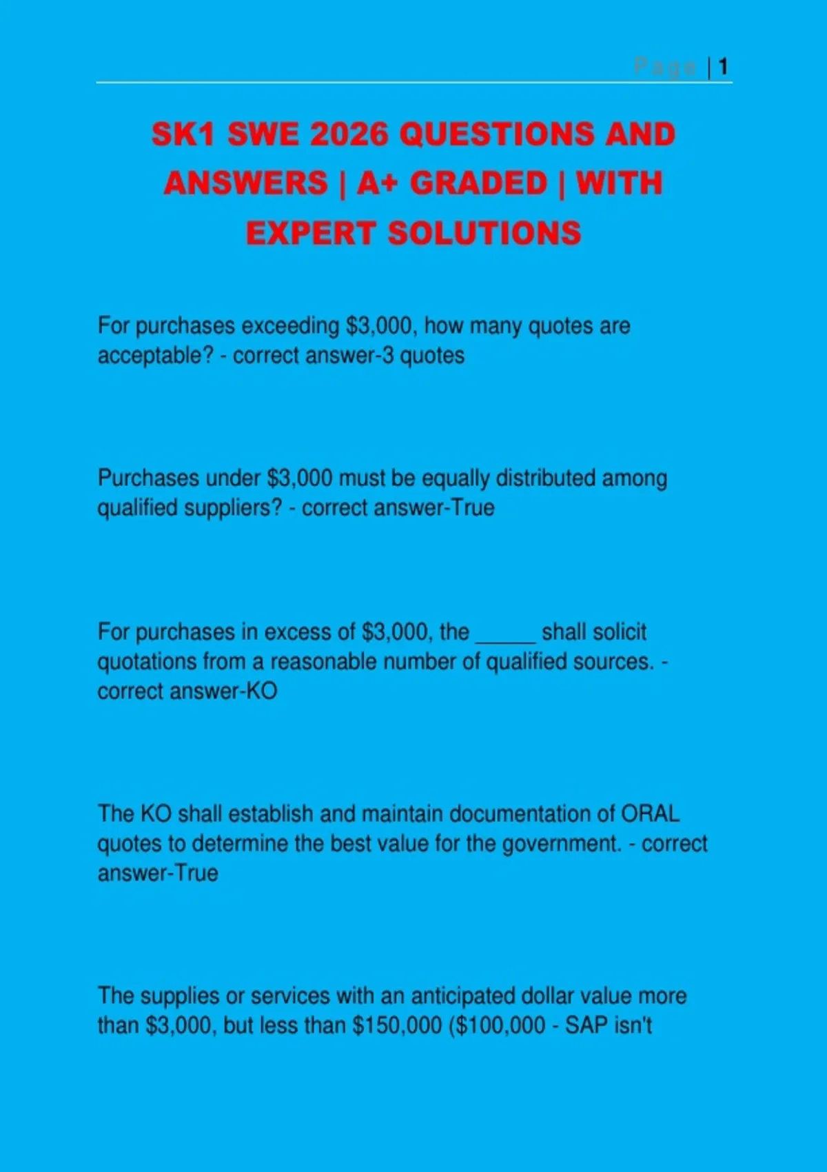 equal or greater than $3,000? - correct answer-SF-1449