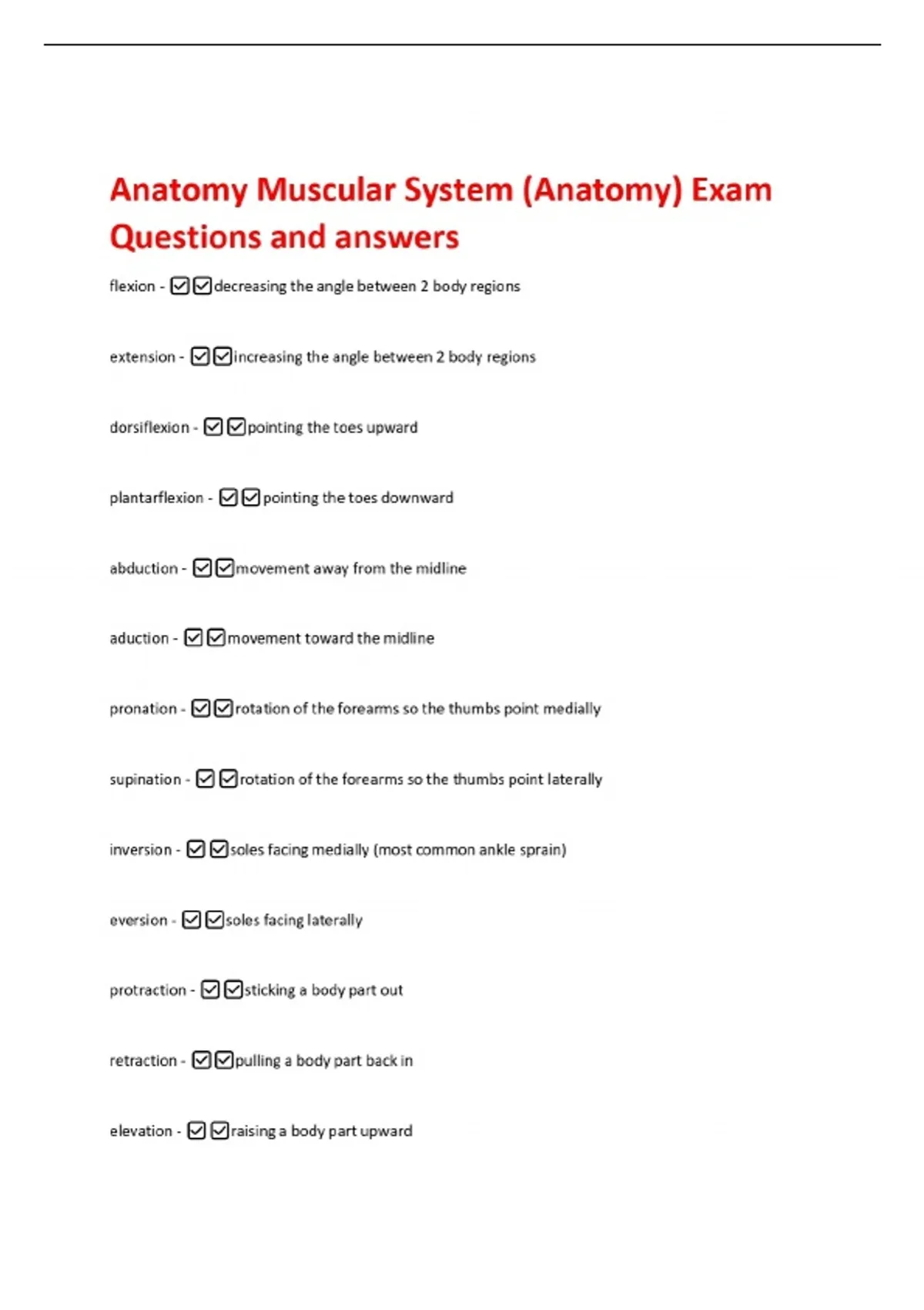 Anatomy Muscular System (Anatomy) Exam Questions and answers