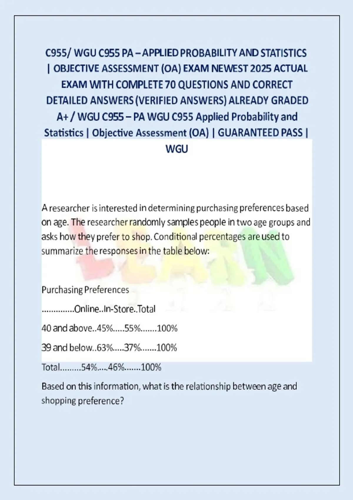 WGU C955 PA Applied Probability and Statistics Objective Assessment OA| Exam Questions and Verified Answers| Latest Update