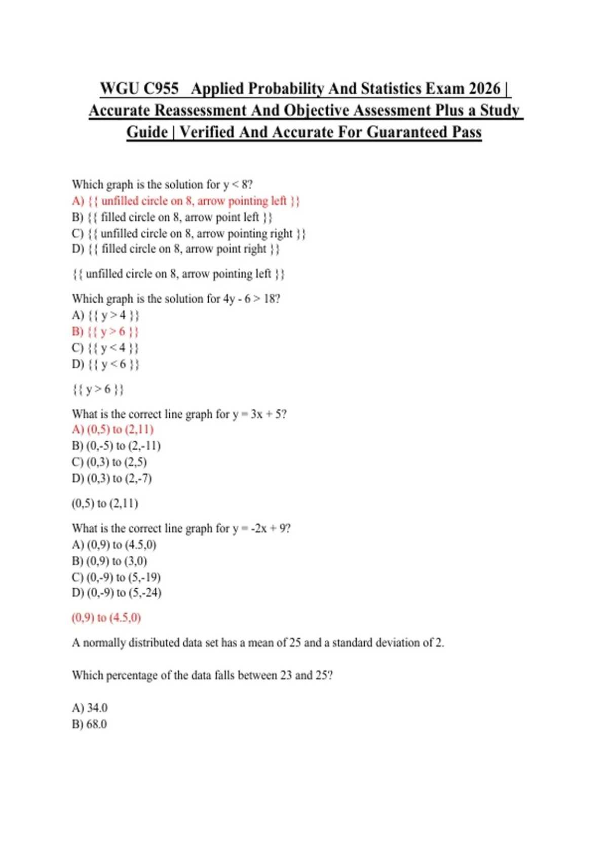 WGU C955 Applied Probability And Statistics Exam 2026 | Accurate Reassessment And Objective Assessment Plus a Study Guide | Verified And Accurate For Guaranteed Pass