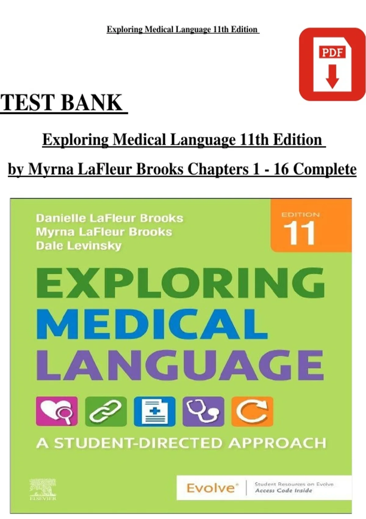 This test bank covers Chapters 1 through 16 of Exploring Medical Language, 11th Edition by Myrna LaFleur Brooks. It includes practice questions designed to reinforce understanding of medical terminology, word building, body systems, and clinical language used in healthcare settings. The content is suitable for exam preparation and review for students in medical assisting, nursing, allied health, and healthcare administration programs.