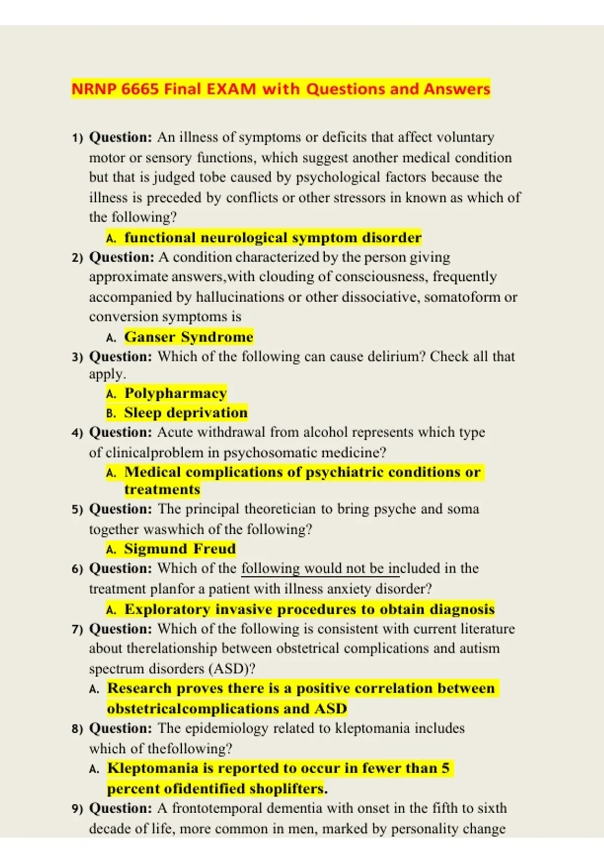 This 2026 updated NRNP 6665 Final Exam guide provides comprehensive exam-style questions covering advanced nursing concepts, patient assessment, clinical decision-making, and evidence-based practice relevant to the NRNP 6665 curriculum. Designed for nursing students, it supports exam preparation, reinforces critical course knowledge, and enhances confidence and performance for the final assessment.
