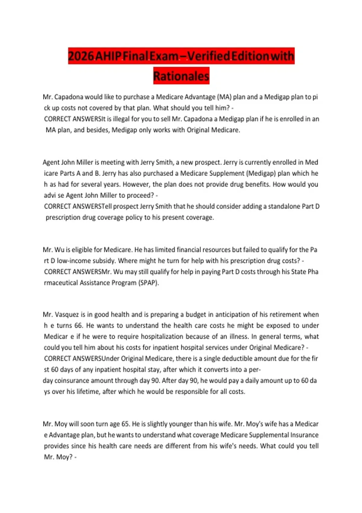 CORRECT ANSWERSTell prospect Jerry Smith that he should consider adding a standalone Part D