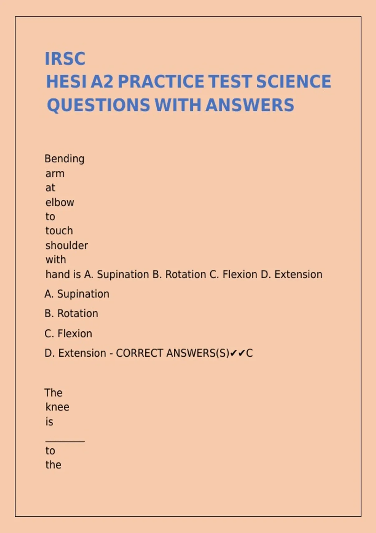 HESI A2 PRACTICE TEST SCIENCE
