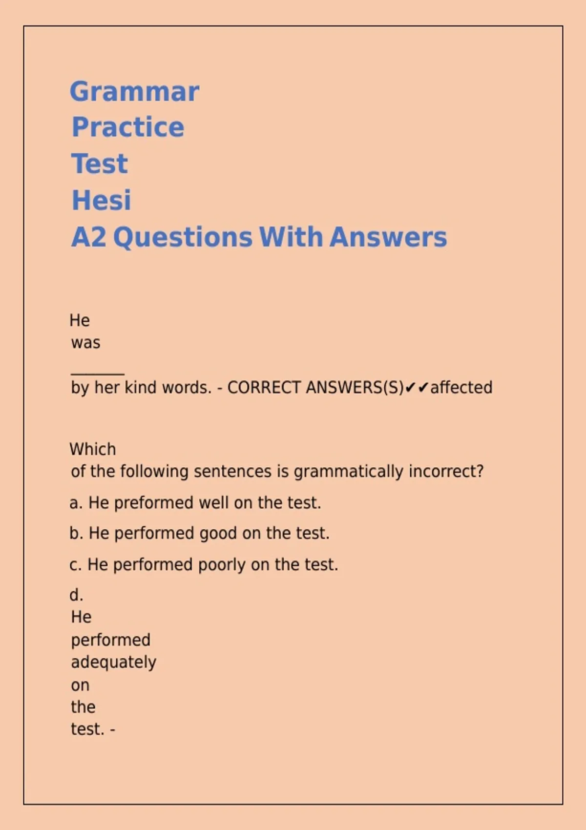 / ANSWERS(S)✔✔b. He performed good on the test. // // // // // //