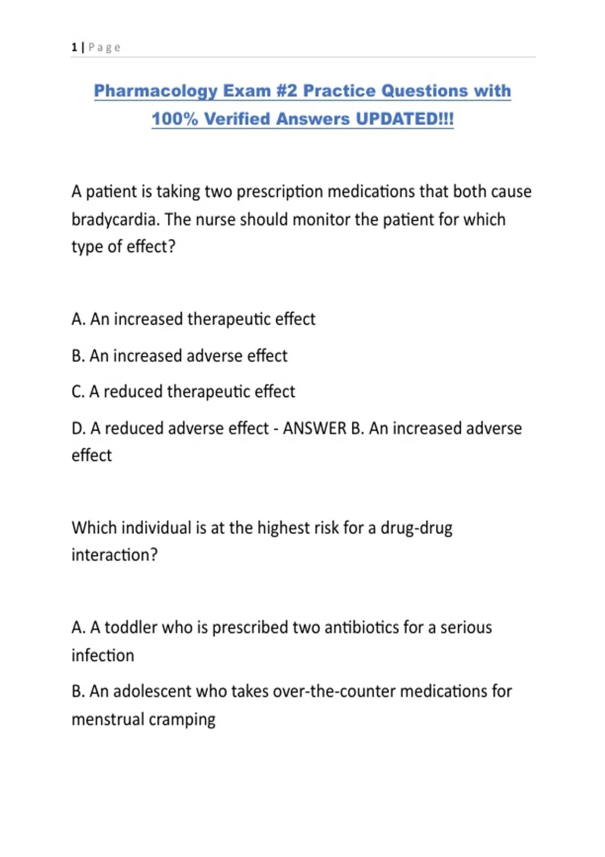 D. A reduced adverse effect - ANSWER B. An increased adverse
